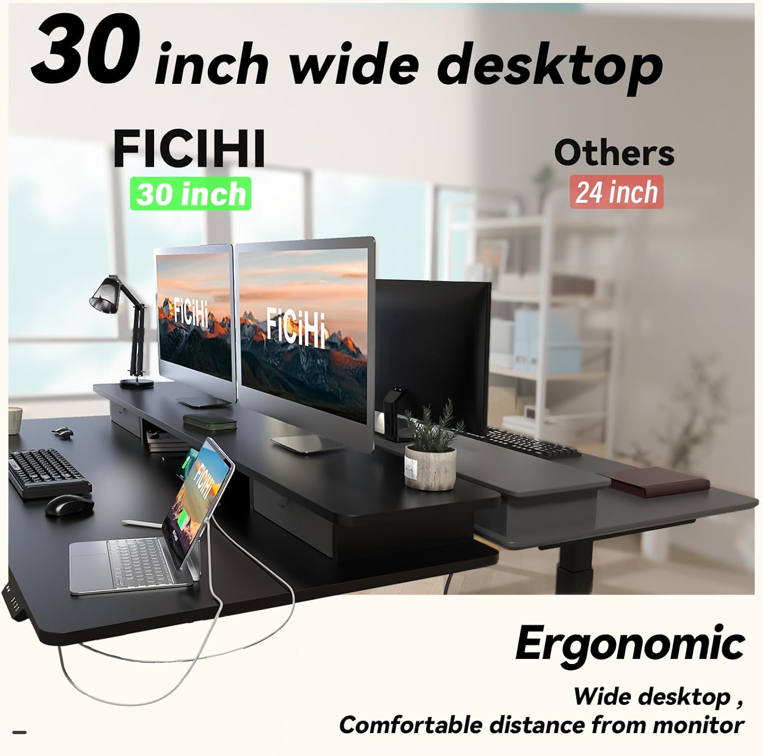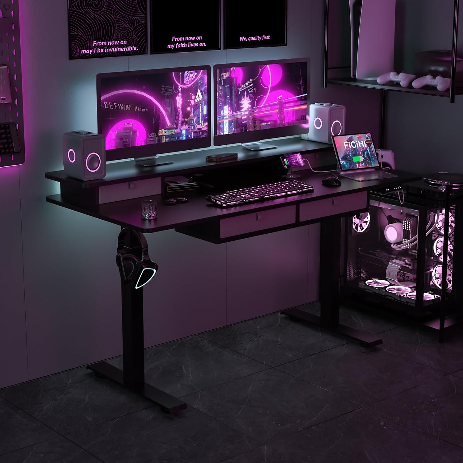 Adjustable Height Standing Desk with 4 Drawers & Wheels,63 x 30 inches Electric Sit Stand Home Office Desk with Two Tiers, 3 Memory Presets, Monitor Stand Riser, USB A/C Charging Port