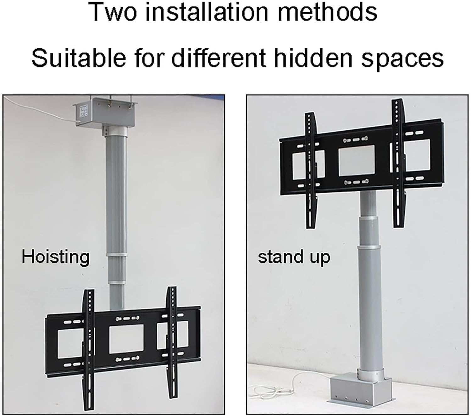 Transform your viewing experience with our Motorised TV Ceiling Mount, designed for seamless integration and convenience. This Electric Motorised Ceiling TV Mount accommodates 26-70 inch LED screens, providing an innovative solution for modern living spaces. With its sleek black finish and robust cold-rolled steel construction, it not only enhances your home décor but also ensures durability and stability. Imagine effortlessly lowering or raising your TV with just the push of a button. Our Telescopic Electric TV Lift features a remote control and switch control for easy operation, allowing you to tailor your viewing angle to perfection. The manual 360° left and right rotation adds versatility, making it ideal for family gatherings or movie nights. The compact design allows for discreet installation in closets or ceilings, keeping your space tidy and nized. Choose from various telescoping lengths - from 30cm to 150cm - to suit your specific needs, ensuring a perfect fit for your home environment. Safety is our priority. Our product comes with installation hardware and a user manual to facilitate a secure setup. Regularly check the screws for any looseness to maintain stability and prevent potential accidents. Whether you are watching your favorite show, hosting a movie marathon, or playing video games, this motorised mount elevates your entertainment experience. Enjoy the fom of adjusting your TV‘s height and angle to match your comfort level. With our dedicated after-sales service, you can rest assured that any concerns will be promptly addressed. Elevate your home entertainment with our Motorised TV Ceiling Mount \u2013 the perfect blend of functionality and style for any modern home.