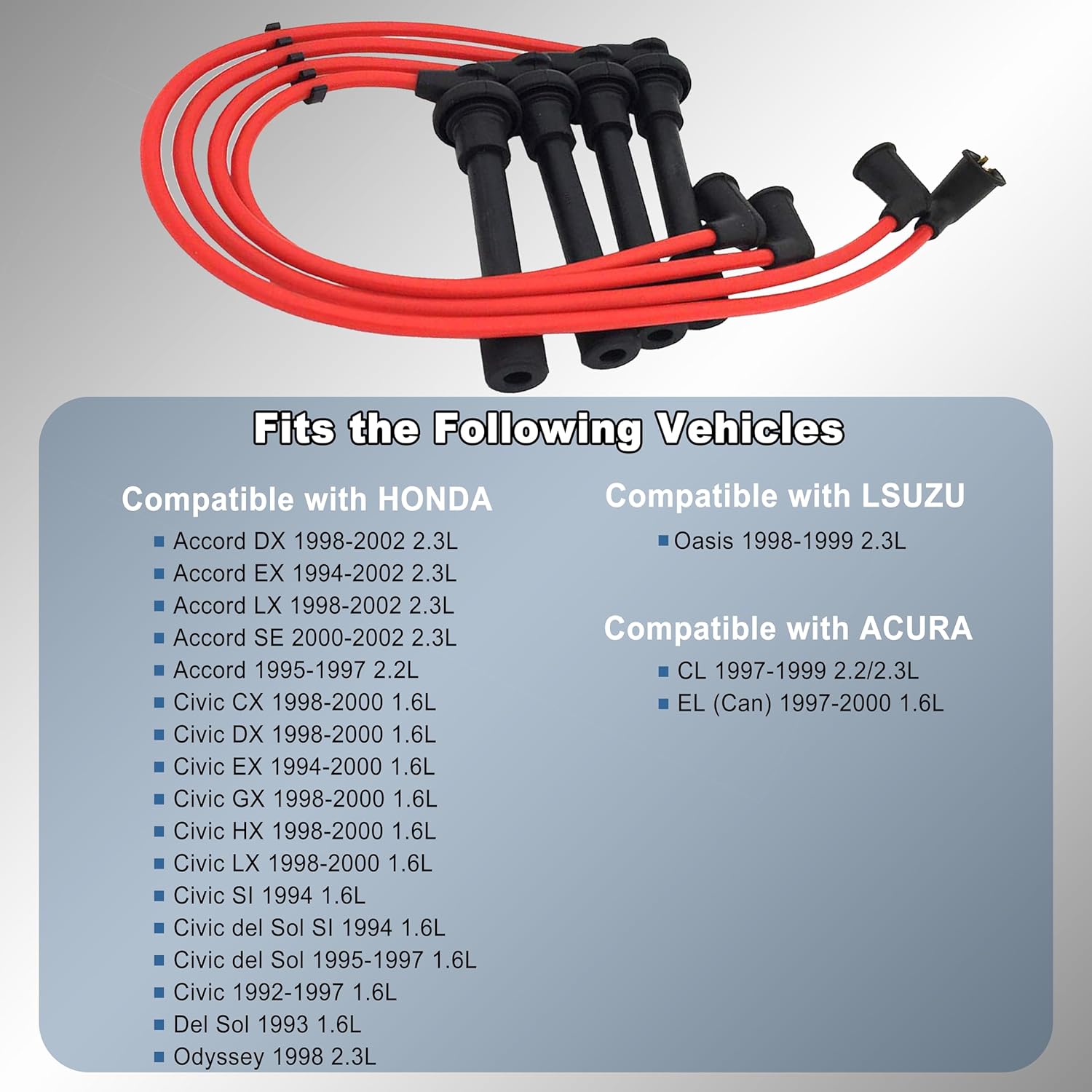 ADP Premium Spark Plug Wire Set Igniton Silicone Performance Cable Leads Compatible with Acura Certain Accord Civic CL EL Isuzu Oasis 1994-2002 1.6L 2.2L 2.3L