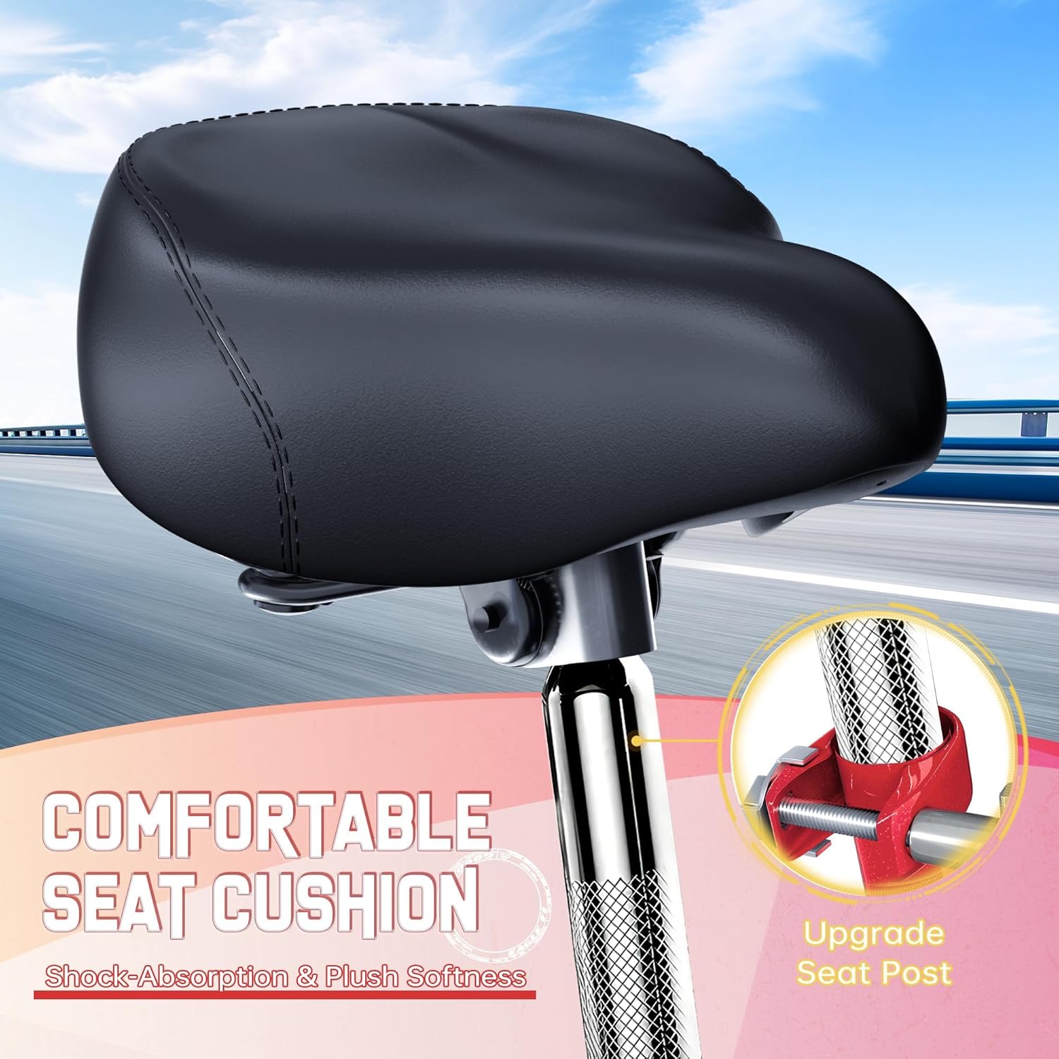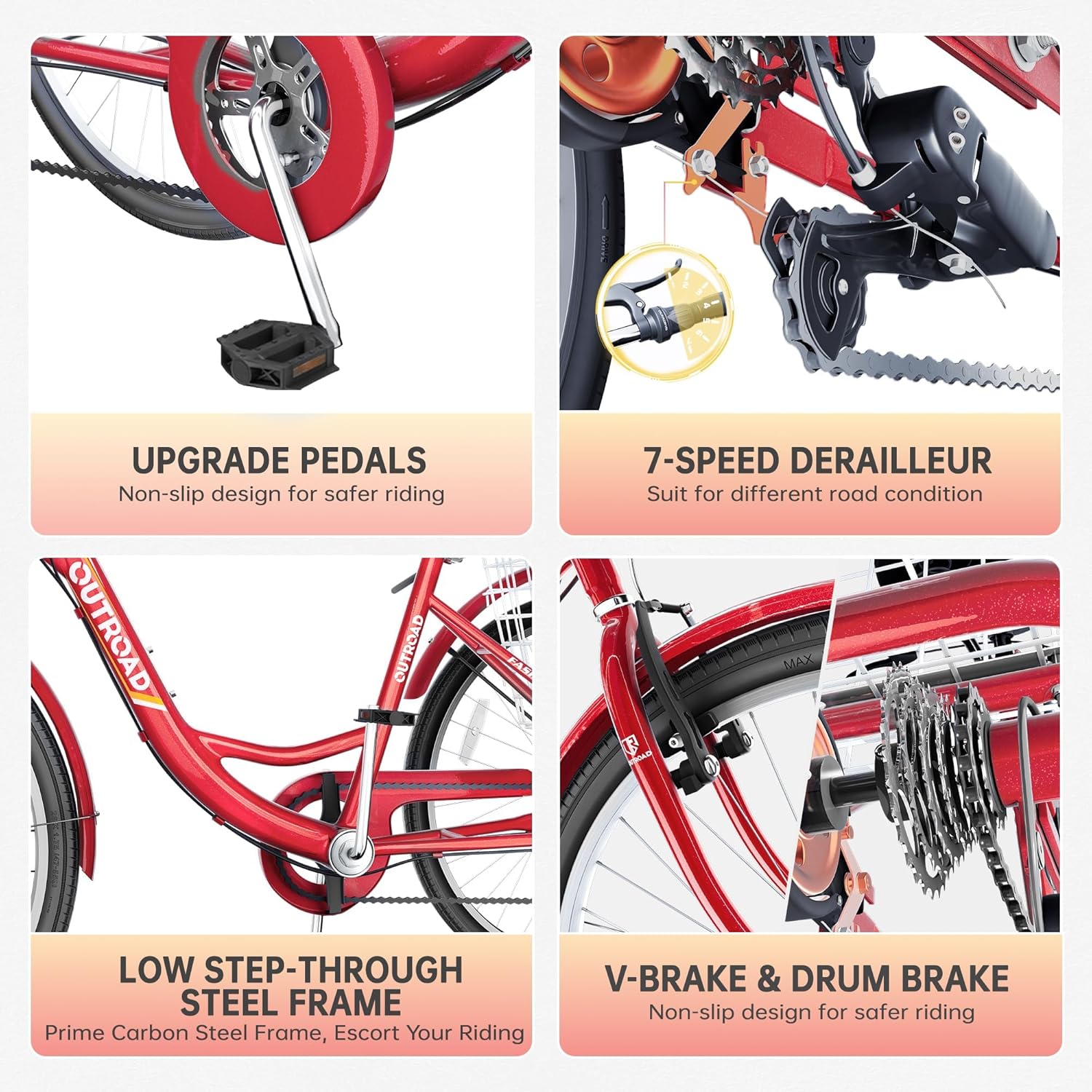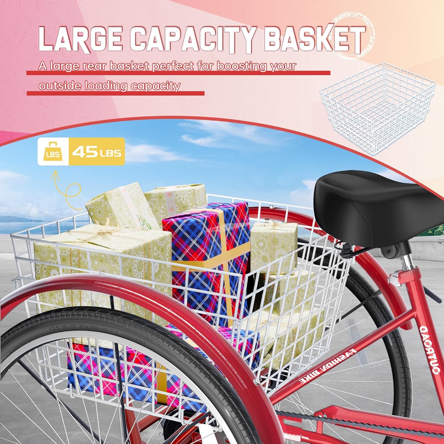 Adult Tricycle, 24/26 inch 7 Speed Cruiser Trike, 3 Wheel Bikes with Large Basket for Women and Men, Adult Trikes for Shopping Picnic Outdoor Sports (24 Red)