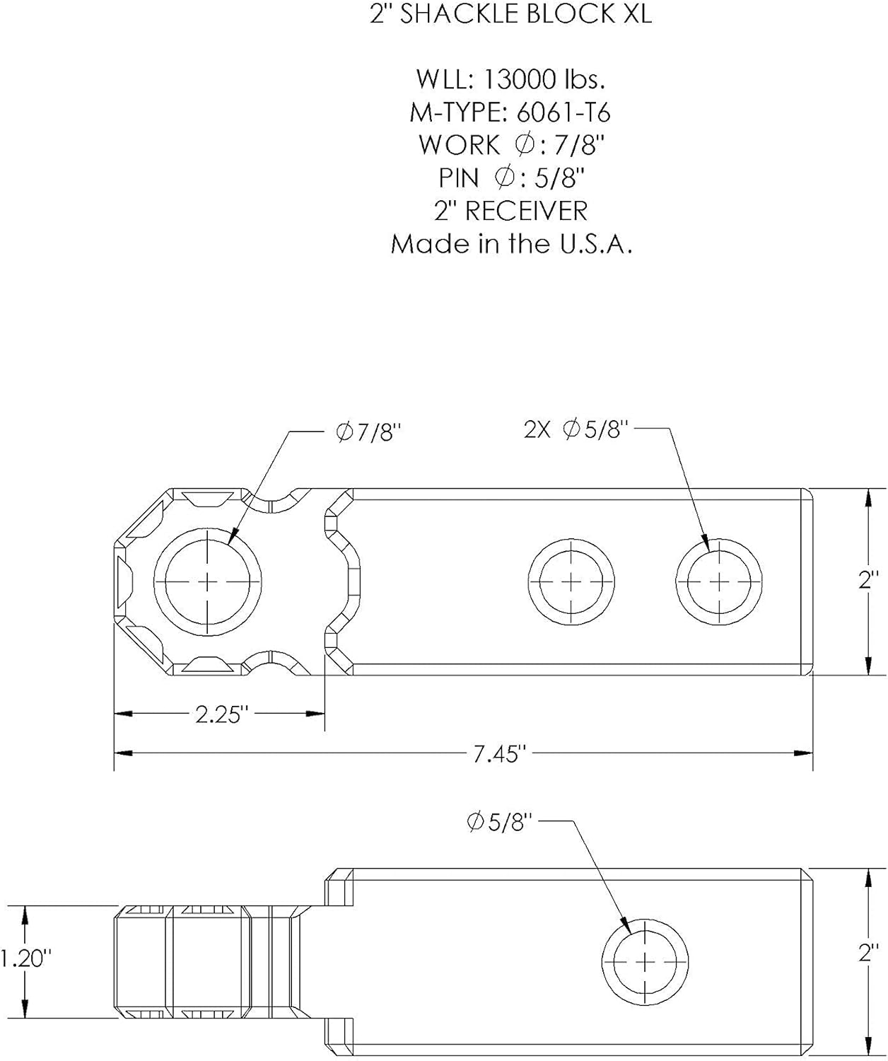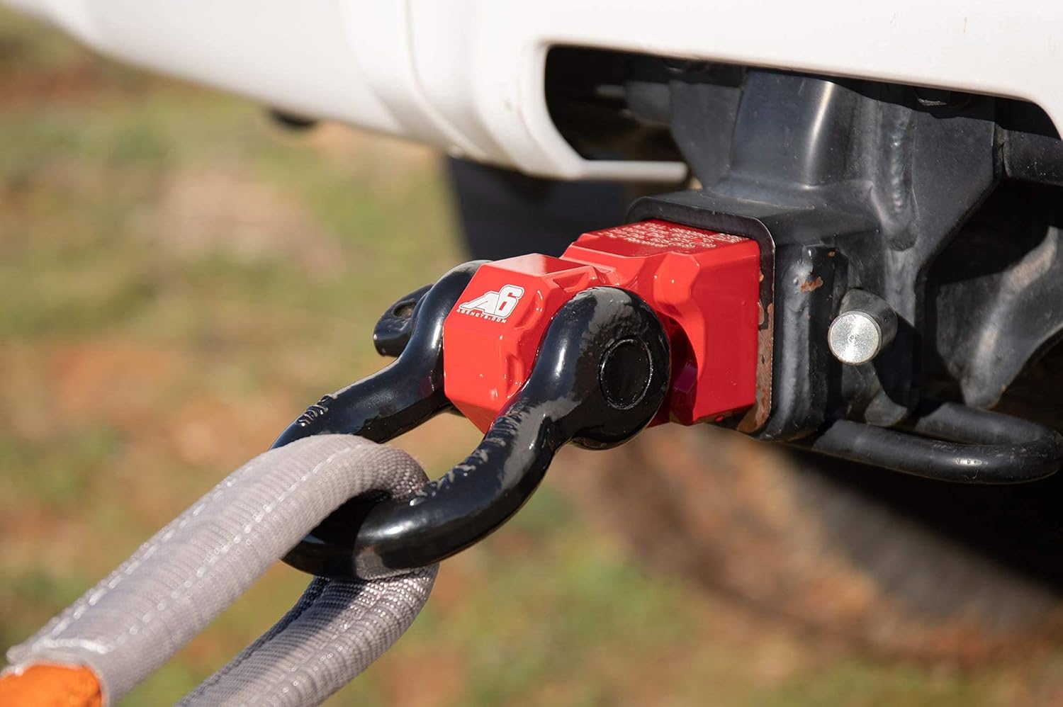 AGENCY 6 Recovery Shackle Block Assembly 2 INCH Double Hole Powder Coat RED - Hitch Receiver Block - Proudly Made in The USA with US Certified Materials - Includes Hitch pin and D-Ring