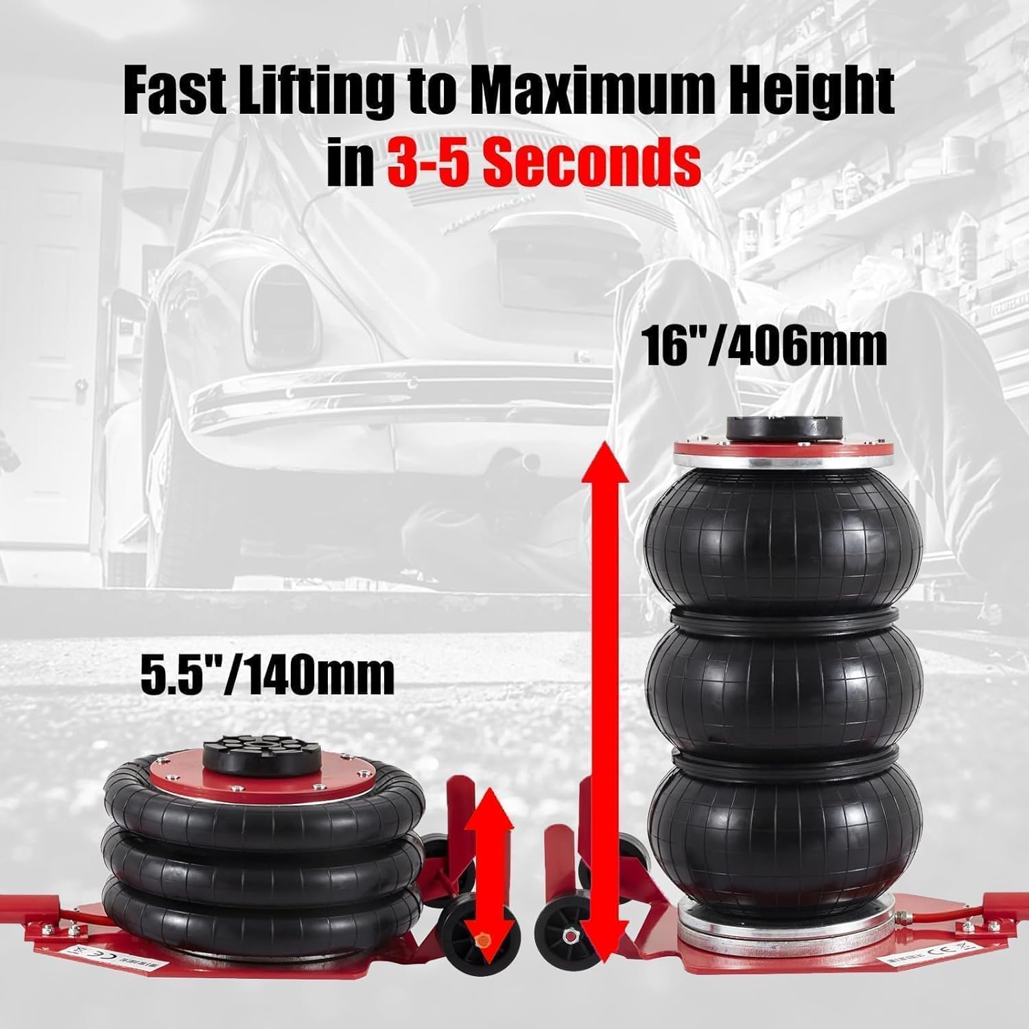Air Jack,Heavy Duty 3 Ton/6600 lbs Air Bag Jack-3-Ply Pneumatic Lift up to 17.7 inch/450 mm for Cars/SUVs,Pneumatic Jack with Adjustable Long Handles