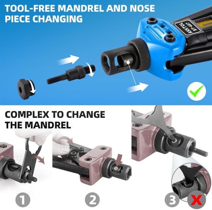 No more wasting time on tricky mandrel changes. The AKKTOL nut rivet tool is designed to make your work smoother and more efficient.