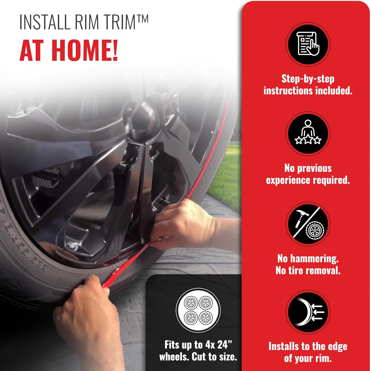 All-Fit Automotive Rim Trim – Durable DIY Car Exterior Accessories for Curb Rash Protection – Fits Up to Four 24” Wheels – Flexible, Durable Wheel Rim Protector (3/8″ width/Red)