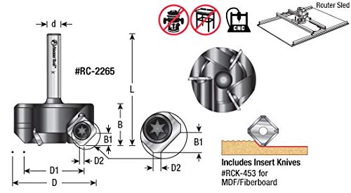 Amana Tool RC-2267 CNC Spoilboard Surfacing Router Bit Rabbeting Slab Leveling Surface Planer 1-3/4 Dia x 3/4 x 1/2 Shank 3 Wing/Flute