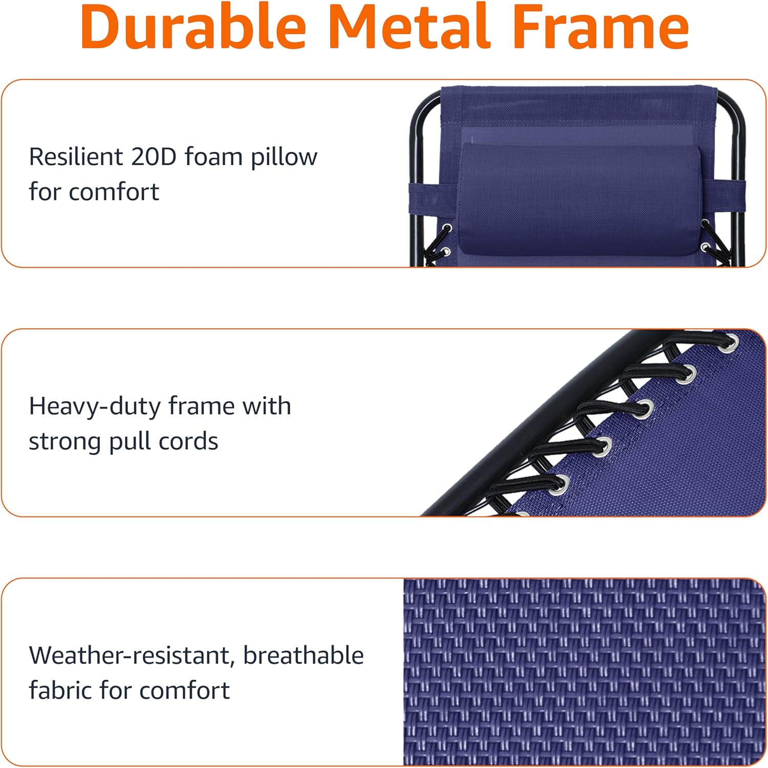 Amazon Basics Outdoor Textilene Zero Gravity Folding Lounge Rocker with Pillow, Navy