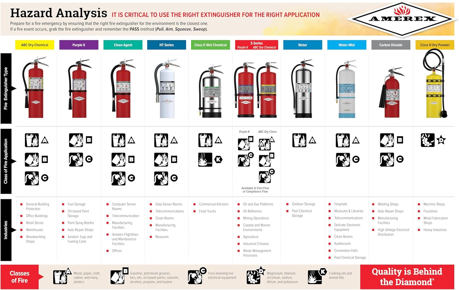 Purple K fire extinguishers contain specially fluidized and siliconized potassium bicarbonate dry chemical which is particularly effective on Class B flammable liquids and pressurized gases. It is electrically non-conductive. Purple K has been the choice of oil, gas, chemical and utilities industries as the preferred firefighting agent. It features an aluminum valve with light-to medium-duty anodized aluminum valve body and an anodized aluminum handle and lever. It's equipped with dependable drawn steel cylinders, durable high gloss polyester powder paint and all-metal valve construction. Bilingual labels.