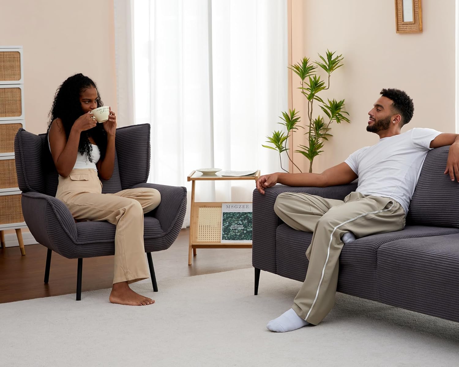 AMERLIFE Accent Chair Set- Wingback Upholstered Living Room Chair, Grey Reading Armchair for Bedroom, Comfy Corduroy Chair Set of 2