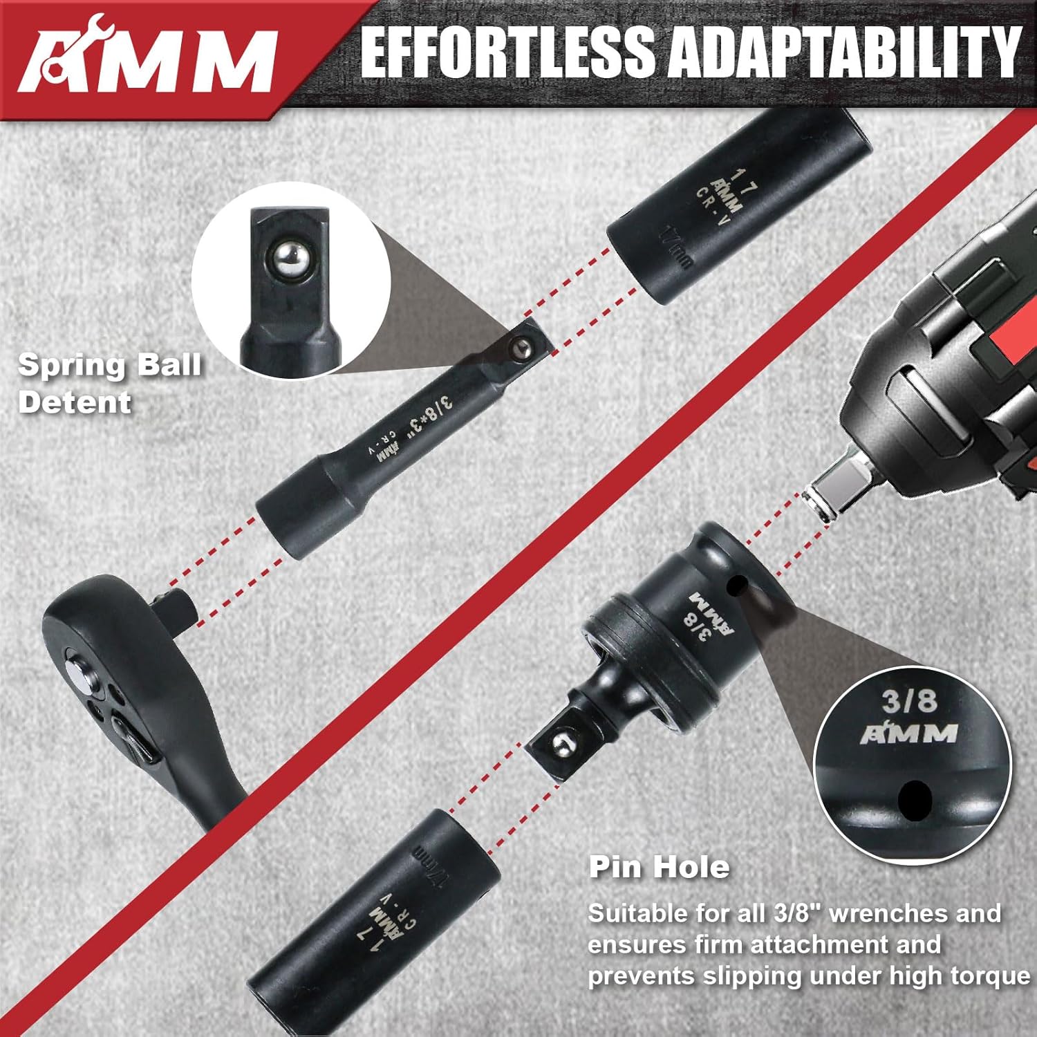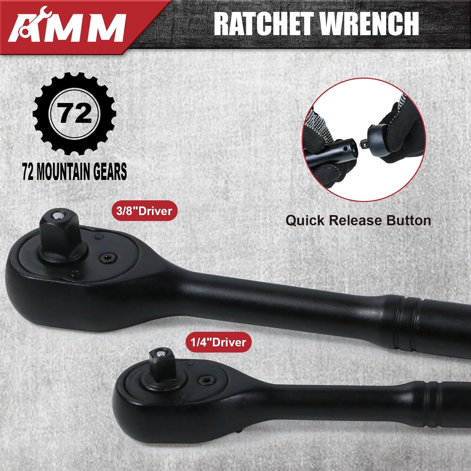 AMM 123Pcs Impact socket set,1/4”3/8”Drive Deep&Shallow Socket wrench set,6 Point Metric&Standard Full 5/32"-3/4",4-22mm with Spark plug sockets,72T Ratchet handle,Screwdrivers,for Automotive&Home