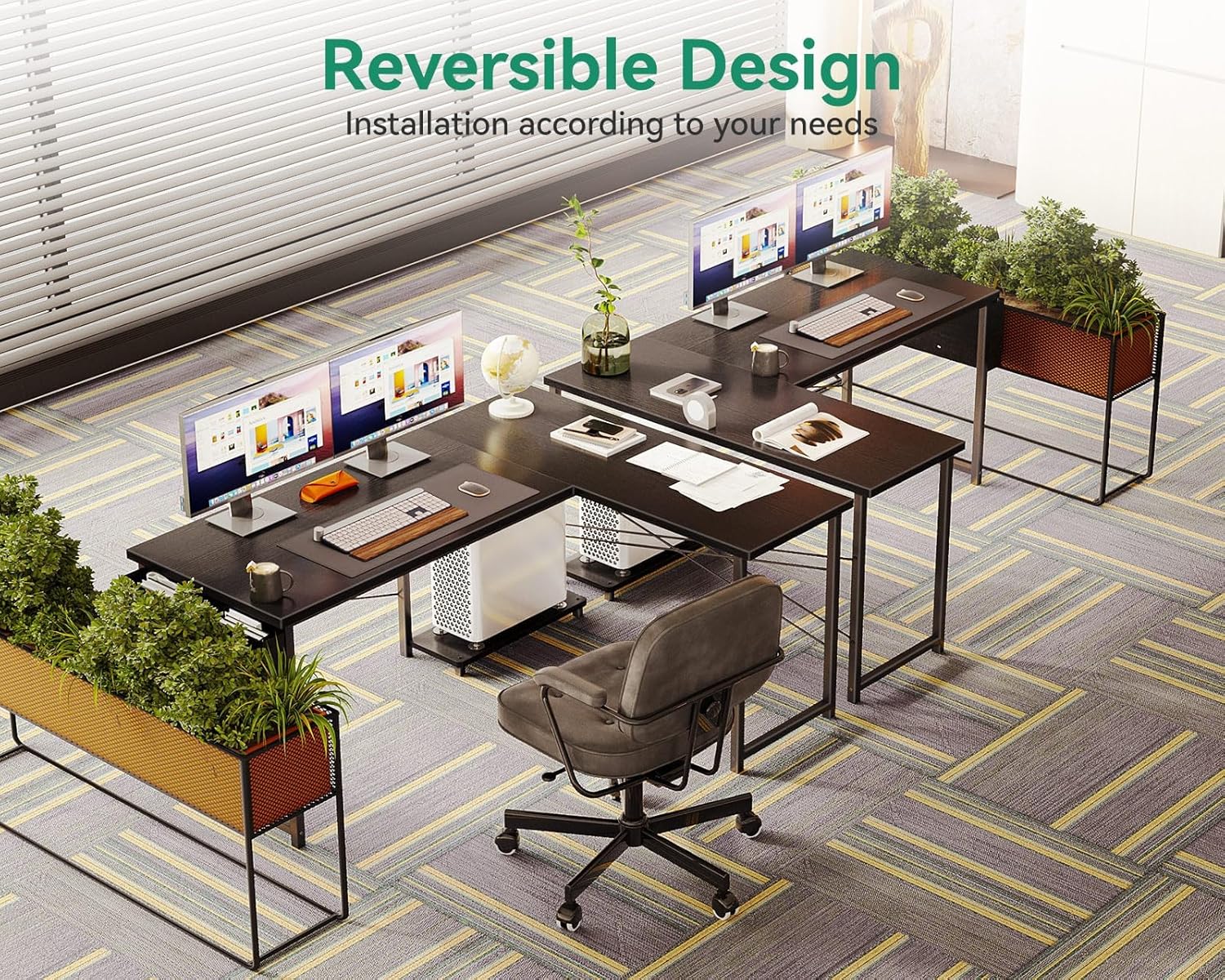 AODK L Shaped Desk, 50 Inch Computer Desk with Storage Bag, Reversible Home Office Desk with Host Stand, Black Corner Table for Bedroom Studio, Modern Wood PC Desk for Study Work