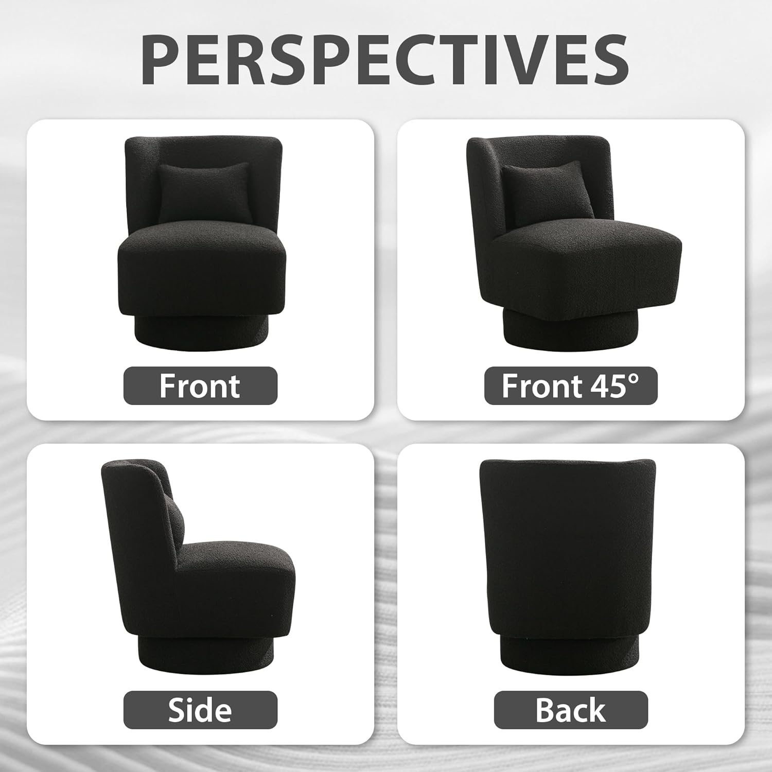 Aoiy & Wifon 23.6" W Comfy Swivel Accent Chair, Modern Living Room Accent Chair, 360 Degree Swivel Barrel Chairs for Living Room, Boucle, Black, 2PACK
