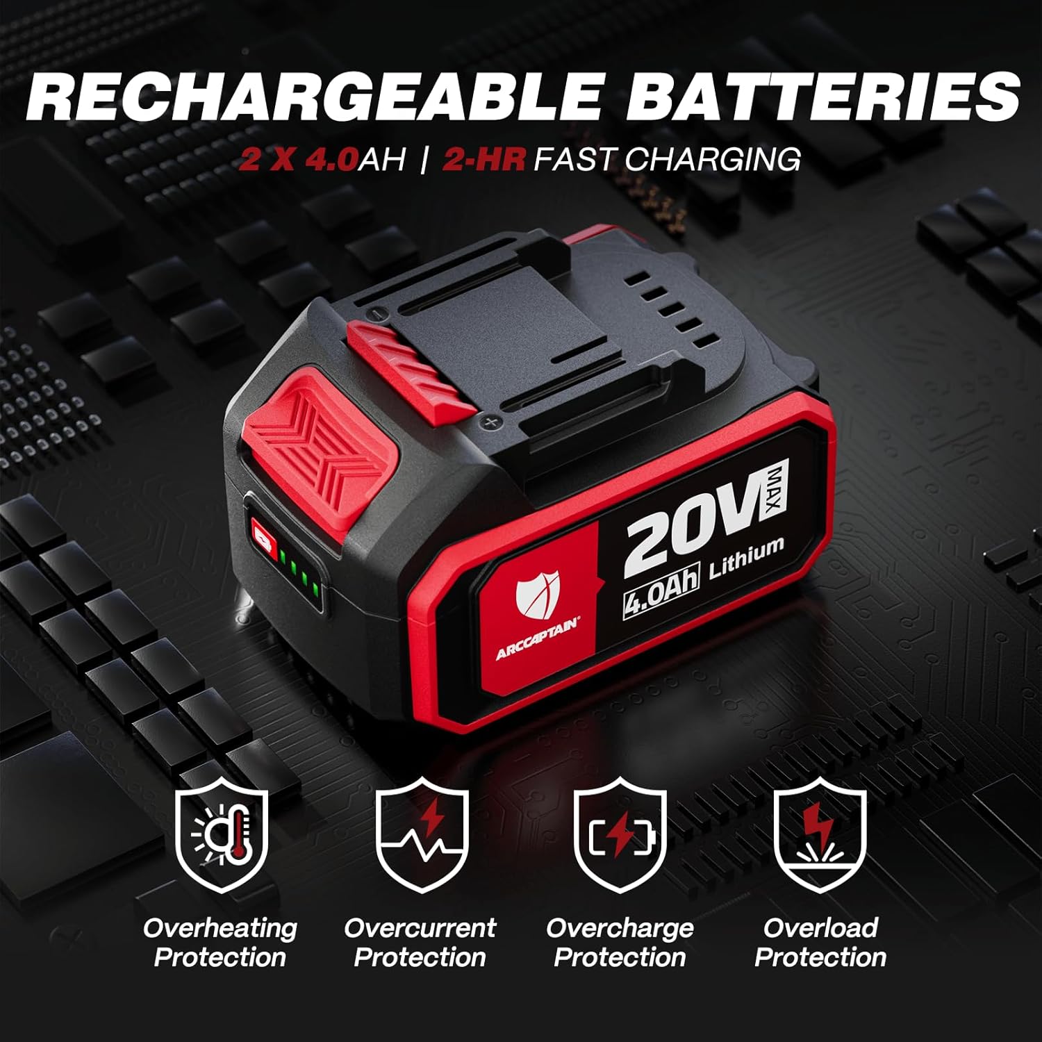 ARCCAPTAIN Angle Grinder Kit, 4-1/2 to 5",【Paddle Switch】9500RPM 1200W Brushless Power Motor Cordless Angle Grinder with 2PCS 4.0AH Batteries, 180°Rotatable Grinder Tool for Cutting/Grinding/Polishing