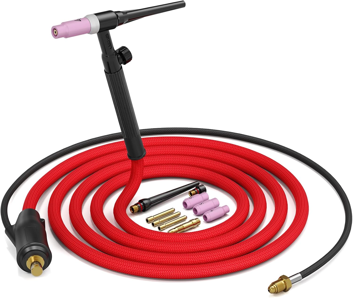ARCCAPTAIN TIG Welding Gun, WP-17V Argon TIG Torch with 13FT Red Air Hose and 35-50mm Connector, Lift Tig Torch 150amp with 13FT Cable for ARCCAPTAIN ARC200, MIG200, MIG250, ARC205 Pro and MIG205 Pro