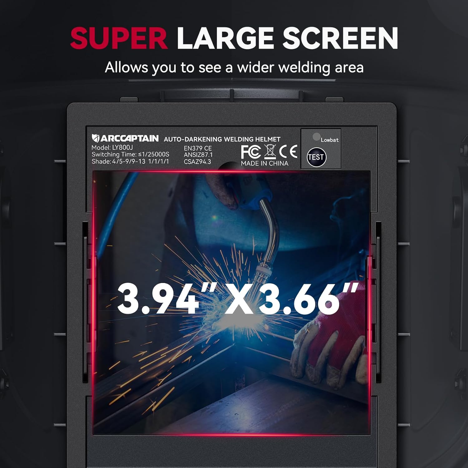 ARCCAPTAIN Welding Helmet Auto Darkening, 3.94"X3.66" Large Viewing Screen True Color Welding Hood with 4 Arc Sensor Solar Powered, Wide Shade 4-5/5-9/9-13 for ARC TIG MIG Welding Helmets for Men