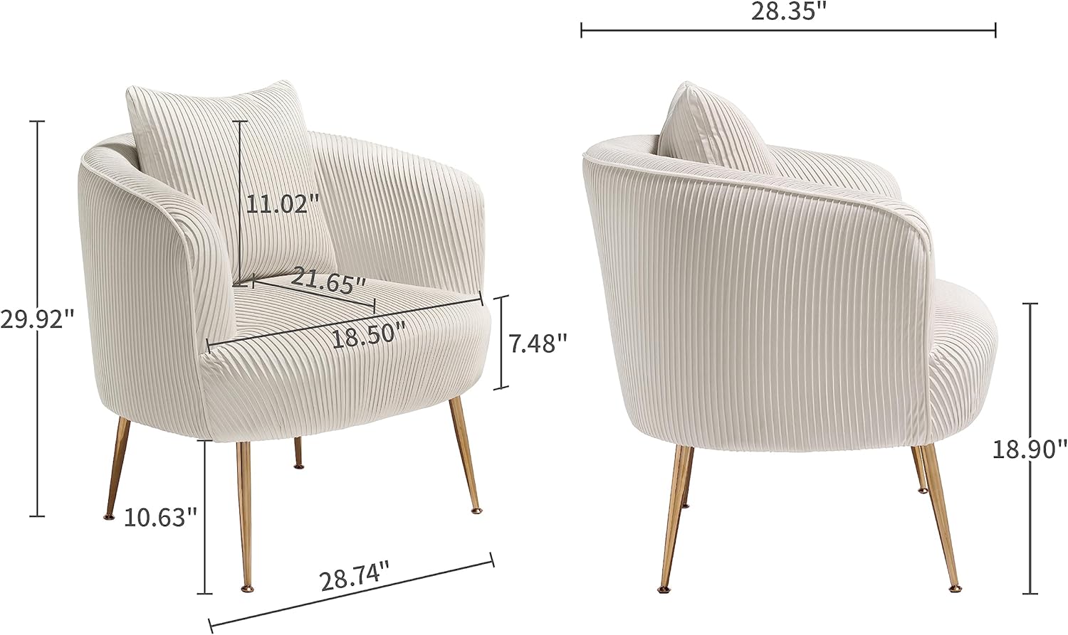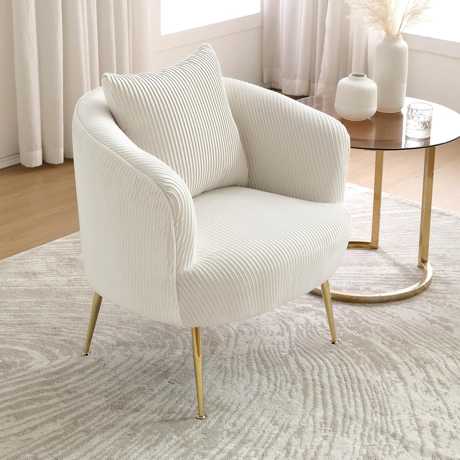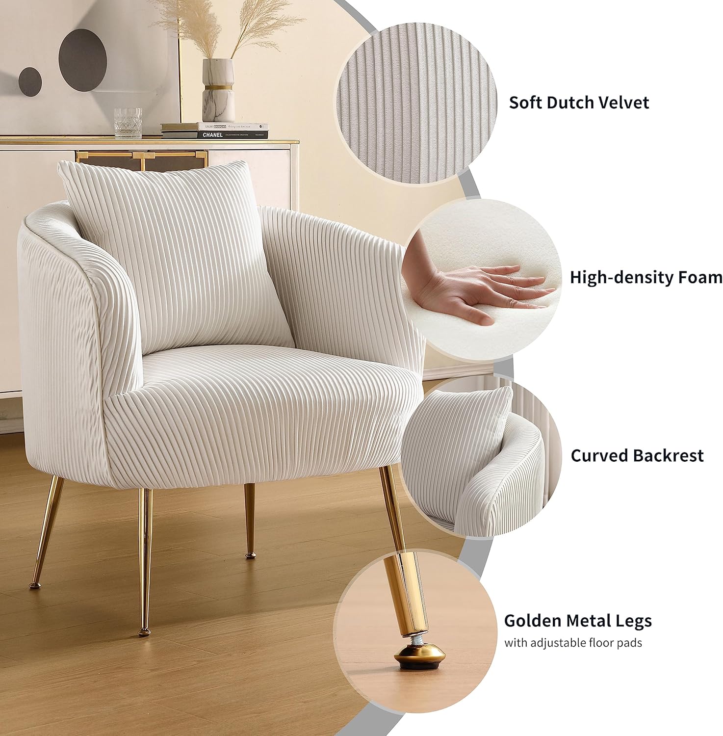 Art Leon Accent Chair Set of 2, Modern Velvet Upholstered Armchairs, Living Room Side Chairs Barrel Chairs with Golden Metal Legs, Off White