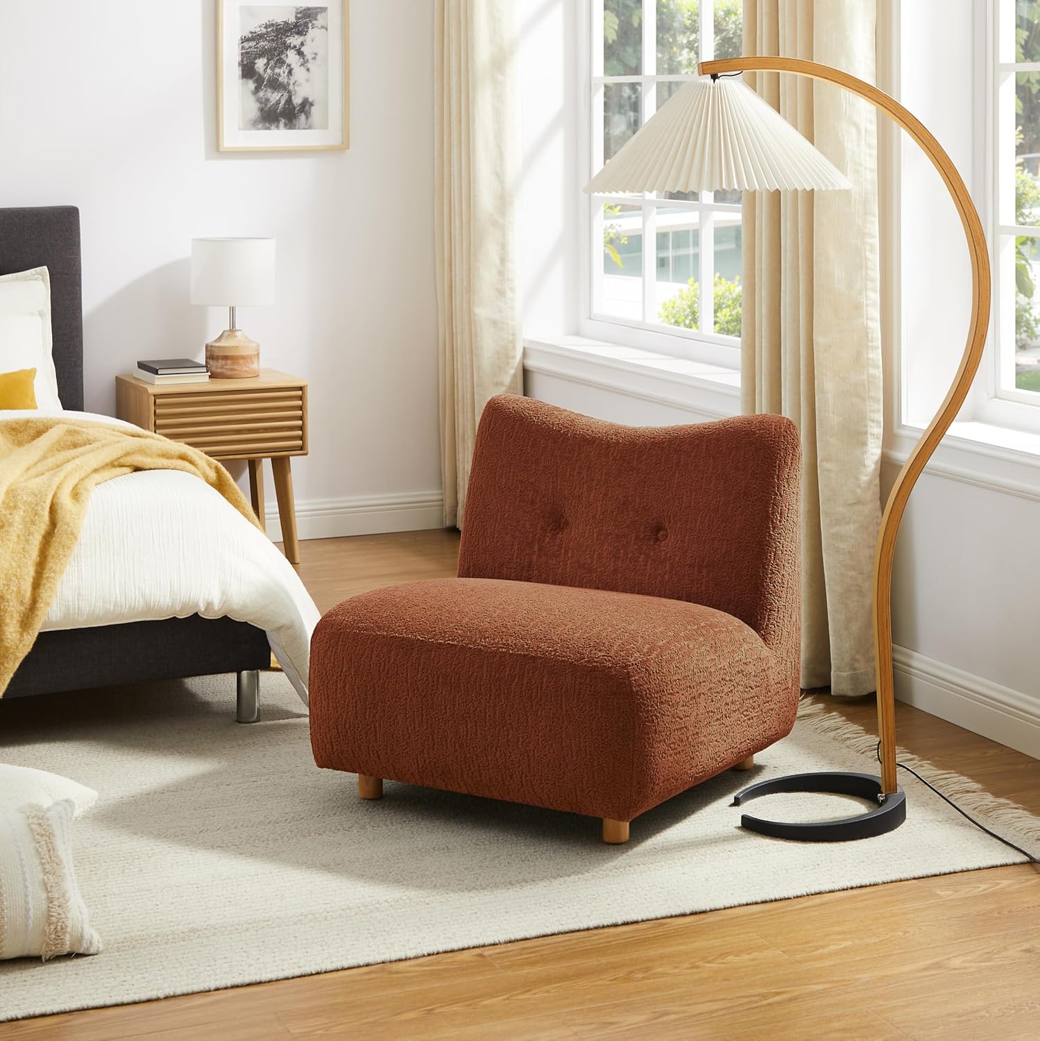 Art Leon Modern Accent Chair - Fabric Modular Sofa Chair Armless Chair with Wooden Legs Set of 2 for Living Room Bedroom Green