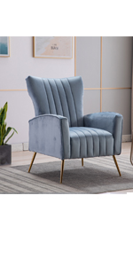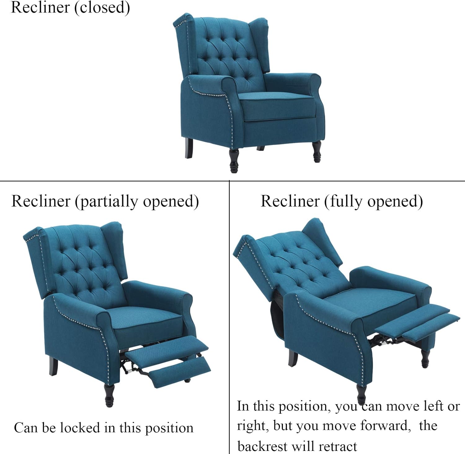 Artechworks Tufted Fabric Push Back Arm Chair Recliner Modern Single Reclining for Adjustable Club Chair Home Theater Padded Seat Living Room Lounge Sofa Blue