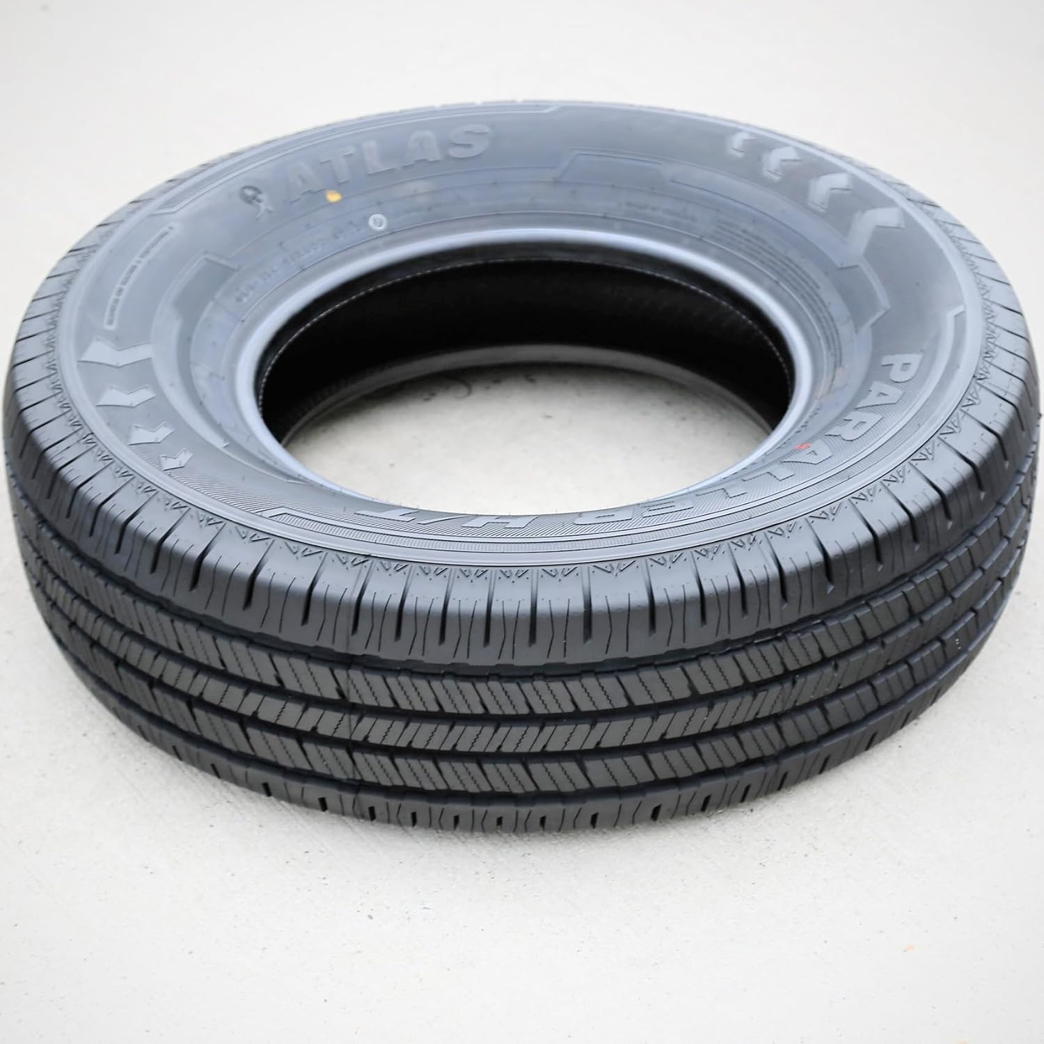 Designed for use on light trucks and SUVs, the Atlas Paraller H/T is a highway terrain tire. Backed by a 50,000 mile limited warranty, the Paraller H/T's four wide grooves force water out of the tire for better traction and performance in wet weather while cross and semi-cross grooves keep the tread stiff for better performance at higher speeds.