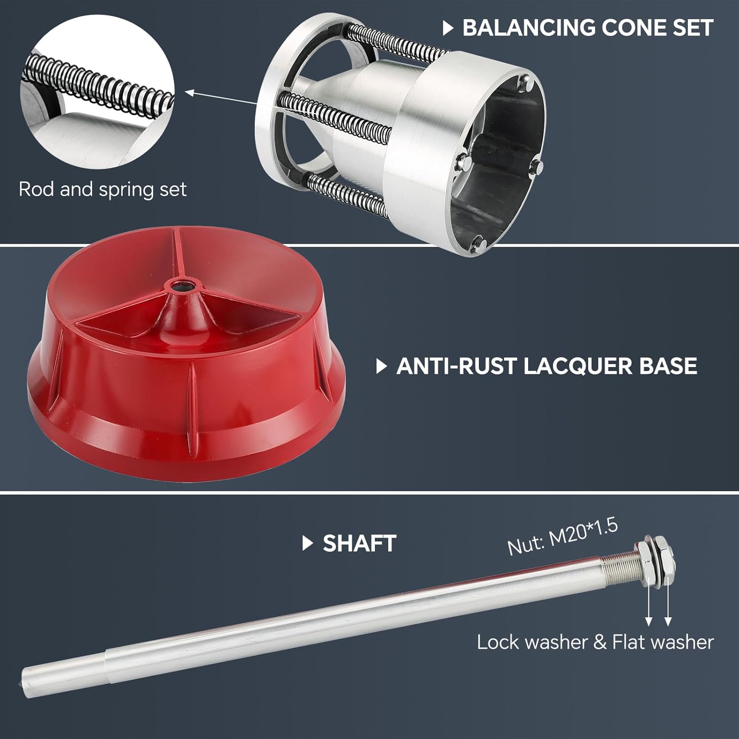 1. Assemble the wheel balancer, view the circular bubble level at the top of the head. Ensure the bubble rests in the middle of the black circle before using the balancer.