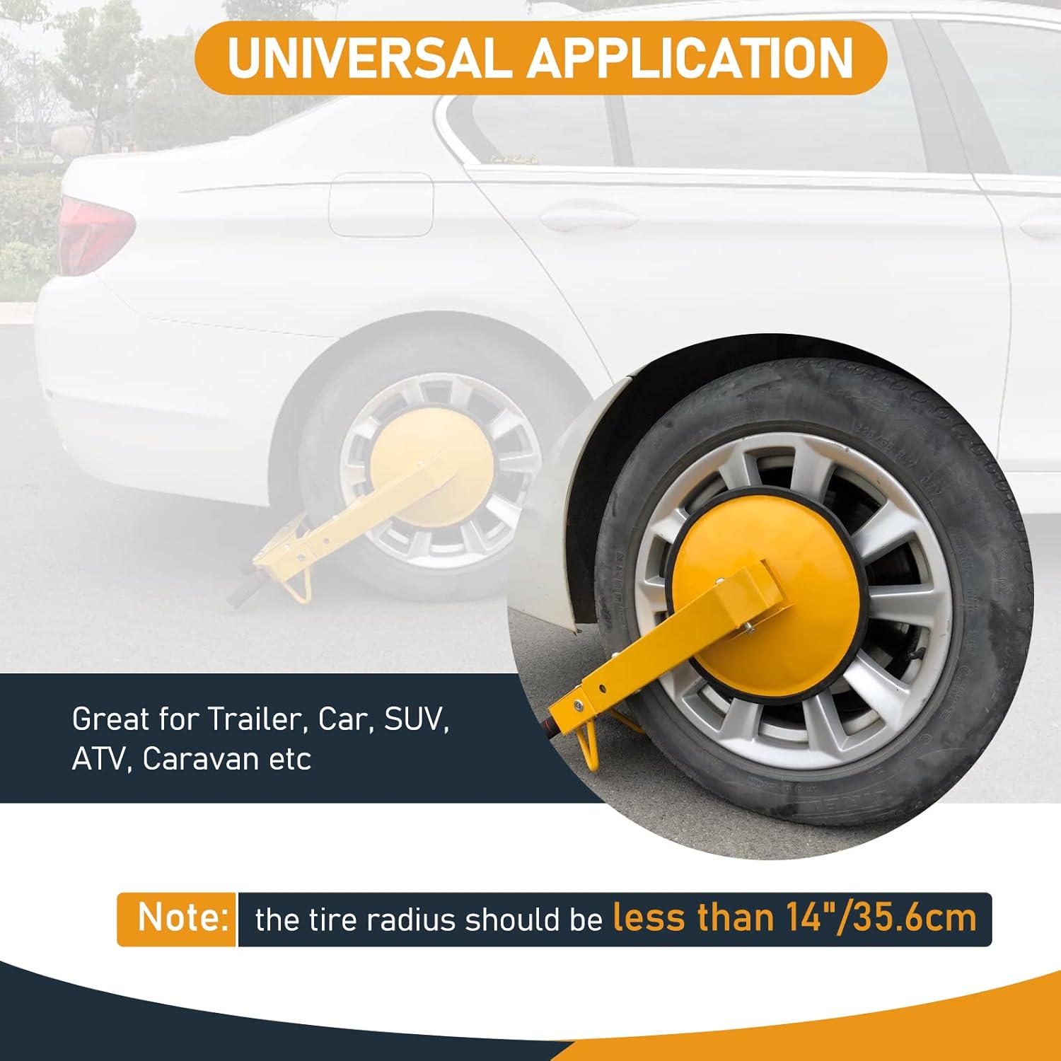 With soft grip handles, our wheel lock clamp is easy to use, can easily adjusted to different kinds of rim and tire sizes, ideal for long stay car parks, car sales forecourts and trailers, fit for almost all vehicle types.
