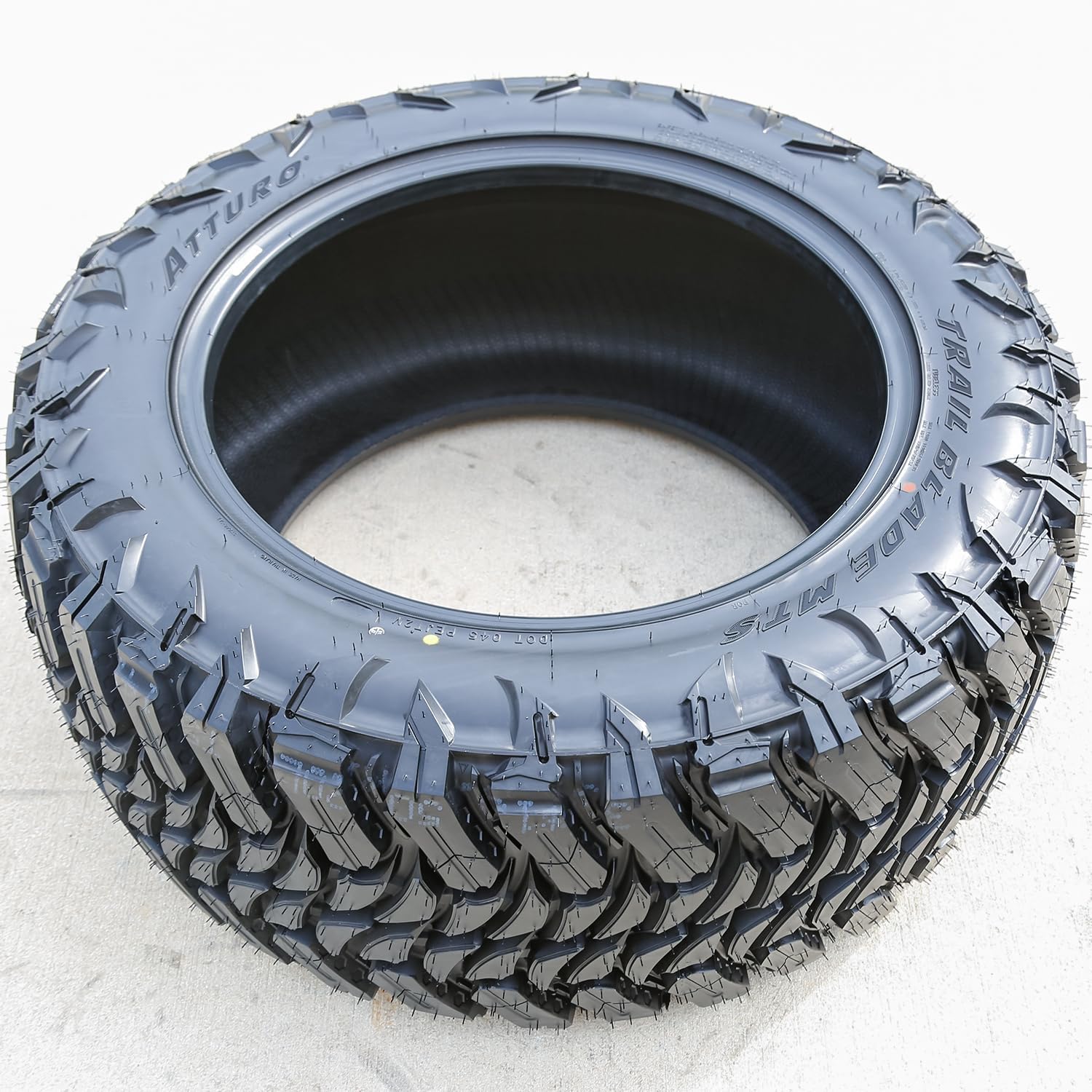 Atturo's Trail Blade MTS is a mud terrain tire for drivers of Jeeps, light trucks, and SUVs. A heavy-duty construction increases load carrying capacity and durability, and the Trail Blade MTS also features stone ejectors within the grooves that force mud, dirt, rocks, and other debris out of the tread for consistent traction and to protect the casing from damage.