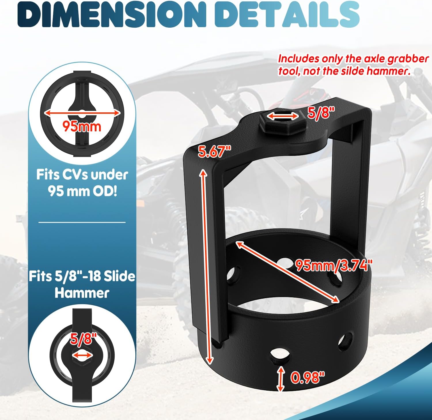 ATV CV Axle Removal Tool Fits 5/8"-18 Slide Hammer (Slide Hammer Not Included), 95mm OD Axle Puller Tool Compatible with ATVs/UTVs, Metal CV Joint Removal Tool with Reinforcement Gussets