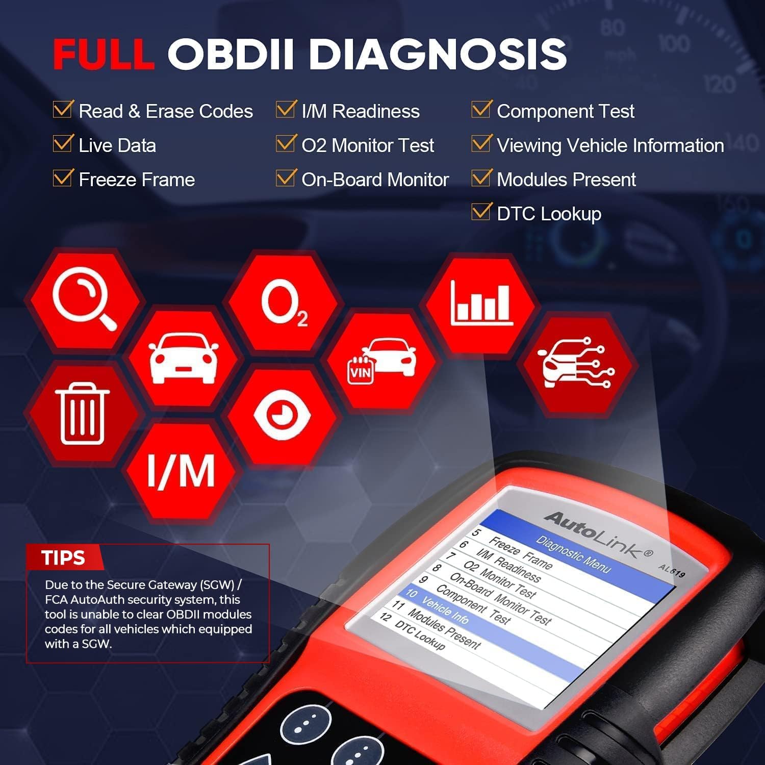OBDII Functions: Compatible with standard OBD II vehicles manufactured from 1996 onward in the US market, however, due to the Secure Gateway (SGW) / FCA AutoAuth security system, this tool is unable to access OBDII modules or clear codes for all vehicles which equipped with a SGW.