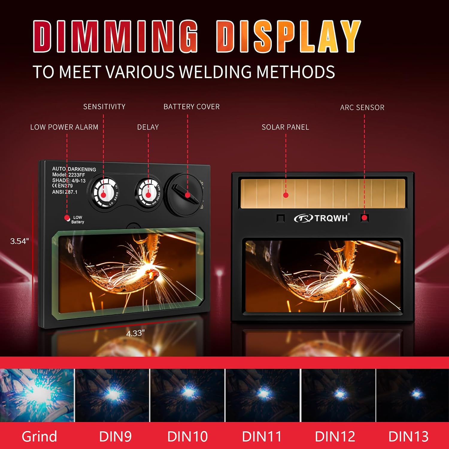 Auto Darkening Welding Helmet with Light Solar Powered True Color Welding Hood 2 Arc Sensor Wide Shade 9-13 Welding Mask with Extra Grinding Mode Weld Helmet (Red)