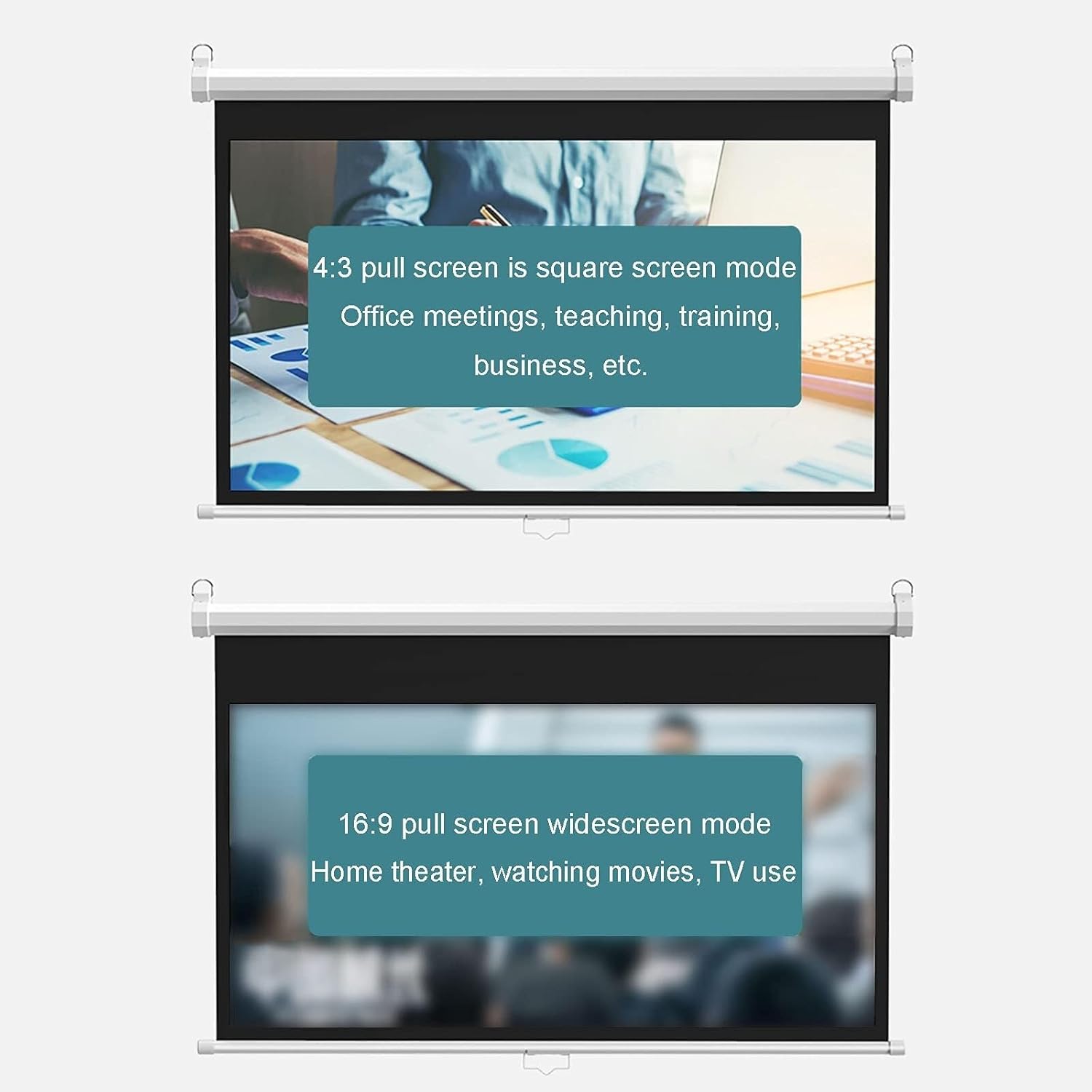 Auto-Locking Retractable Projector Screen, 4:3/16:9 HD Manual Pull-Down, Portable Foldable for Indoor/Outdoor, Conference Home Theater(60inch 16:9)