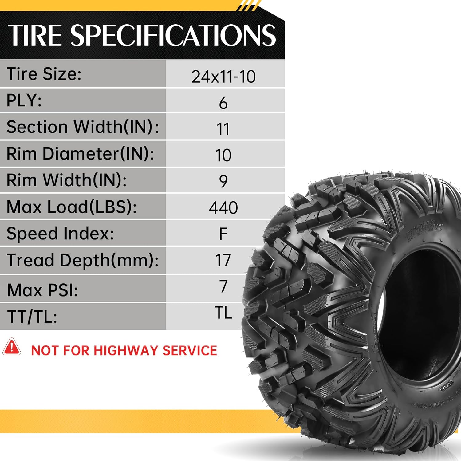 AutoForever ATV UTV Tires 24x11-10,6PR All Terrain Mud Tires 24x11x10 Bighorn Style,Tubeless(Set of 2)