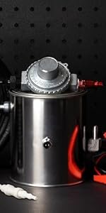 - Works with any sized and any type of air compressor, air pump, and even blowing into it! As long as you're able to connect air to the pressure regulator, you're good to go.