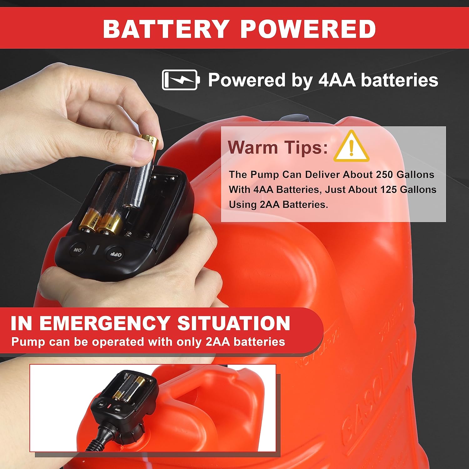 Automatic Fuel Transfer Pump with Auto-Stop Sensor(2.4 GPM), Flexible Intake Hose Fits Most Irregular Gas Cans for Gasoline Diesel Kerosene & More