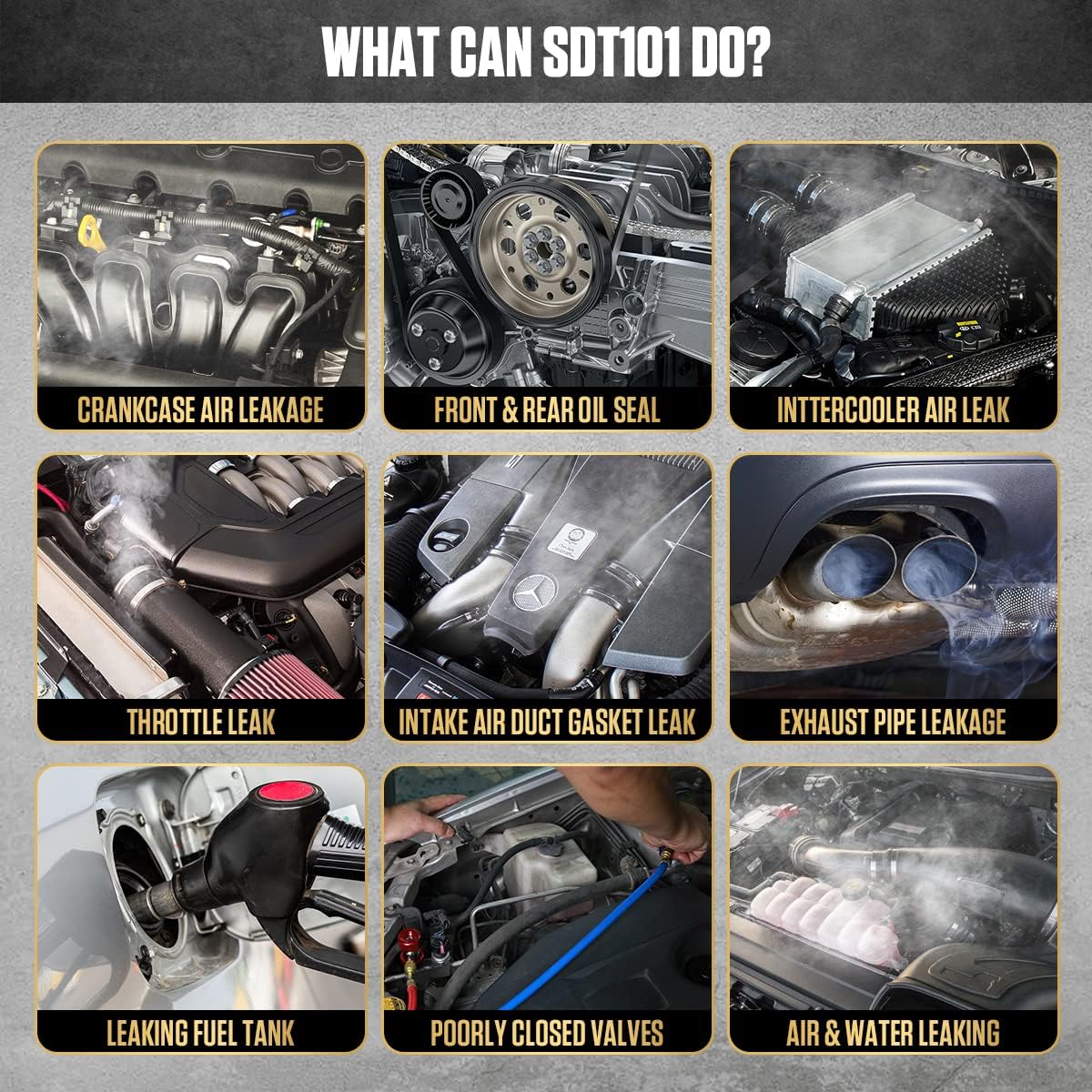 AUTOOL SDT101 Car Smoke Leak Detector is a professional auto pipe leak detect tool and without air pump.It will help us position cars motorcycles leakage on pipe system quickly and exactly,is used to detect leaks in piping systems in automobiles, motorcycles, snowmobiles, ATVs, light trucks and speed boats, suitable for all models(only for 12v DC). For non-professionals, many users may worry about its utility value because they do not use it very often and maybe only once for a long time, so is it worth spending so much money? Yes, you can also use it for your friends or neighbors, or even rent it out to earn extra income.