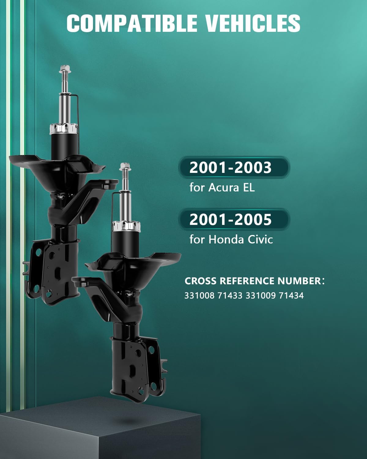 AUTOMUTO 2 Pcs Struts Shock Absorbers Compatible with 2001-2003 for Acura EL,2001-2005 for Honda Civic with 331008 331009 Auto Shocks - Front