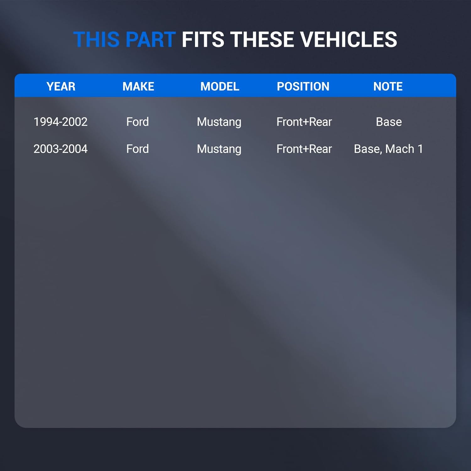 Autoround Front Rear Struts Shock Absorbers Compatible with Ford Mustang 1994 1995 1996 1997 1998 1999 2000 2001 2002 2003 2004, 71962 5968 Auto Gas Shocks Gas Struts Set of 4