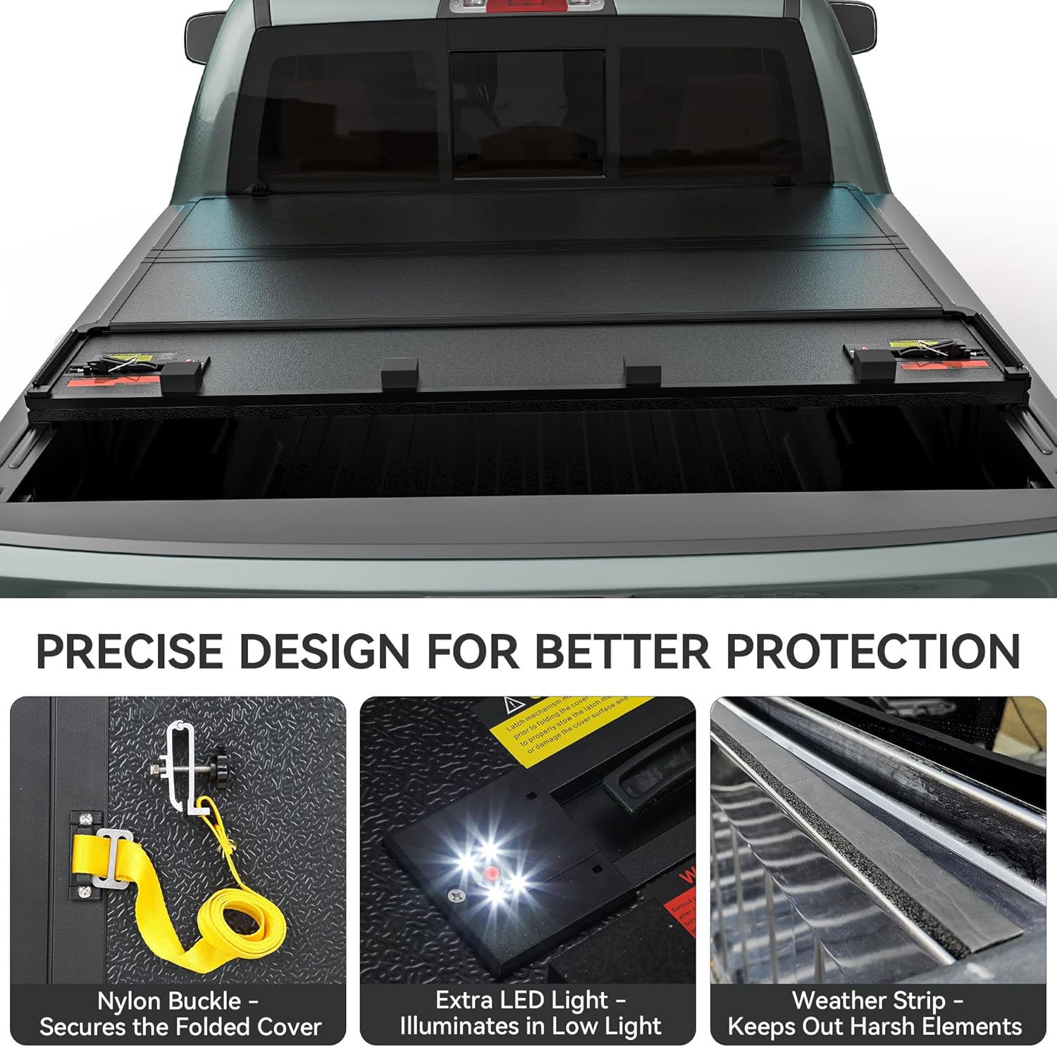 AUTOSAVER88 Hard Quad Fold Truck Bed Tonneau Cover Fit for Chevy Silverado/GMC Sierra 1500 New Body Style 2019-2025 with 5.8ft Bed Without Multi-Flex Tailgate