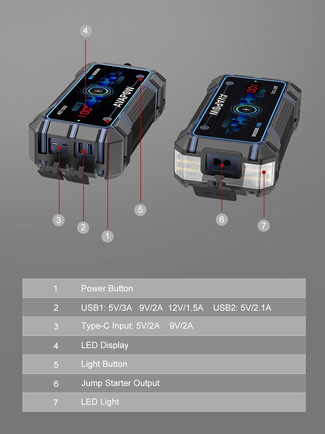 AVAPOW Jump Starter Car Battery 2500A Peak,Portable Jump Starters for Up to 8L Gas 8L Diesel Engine with Booster Function,Wireless Charging Design,12V Lithium Jump Pack with Smart Safety Clamp, IP65