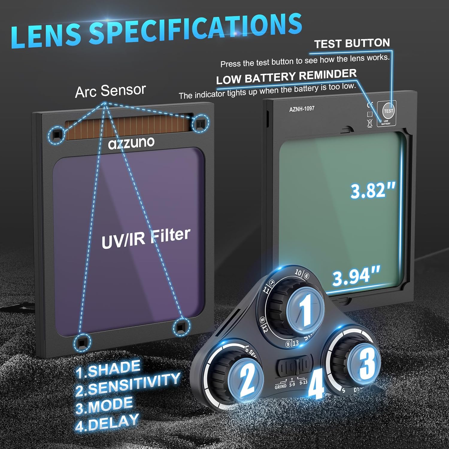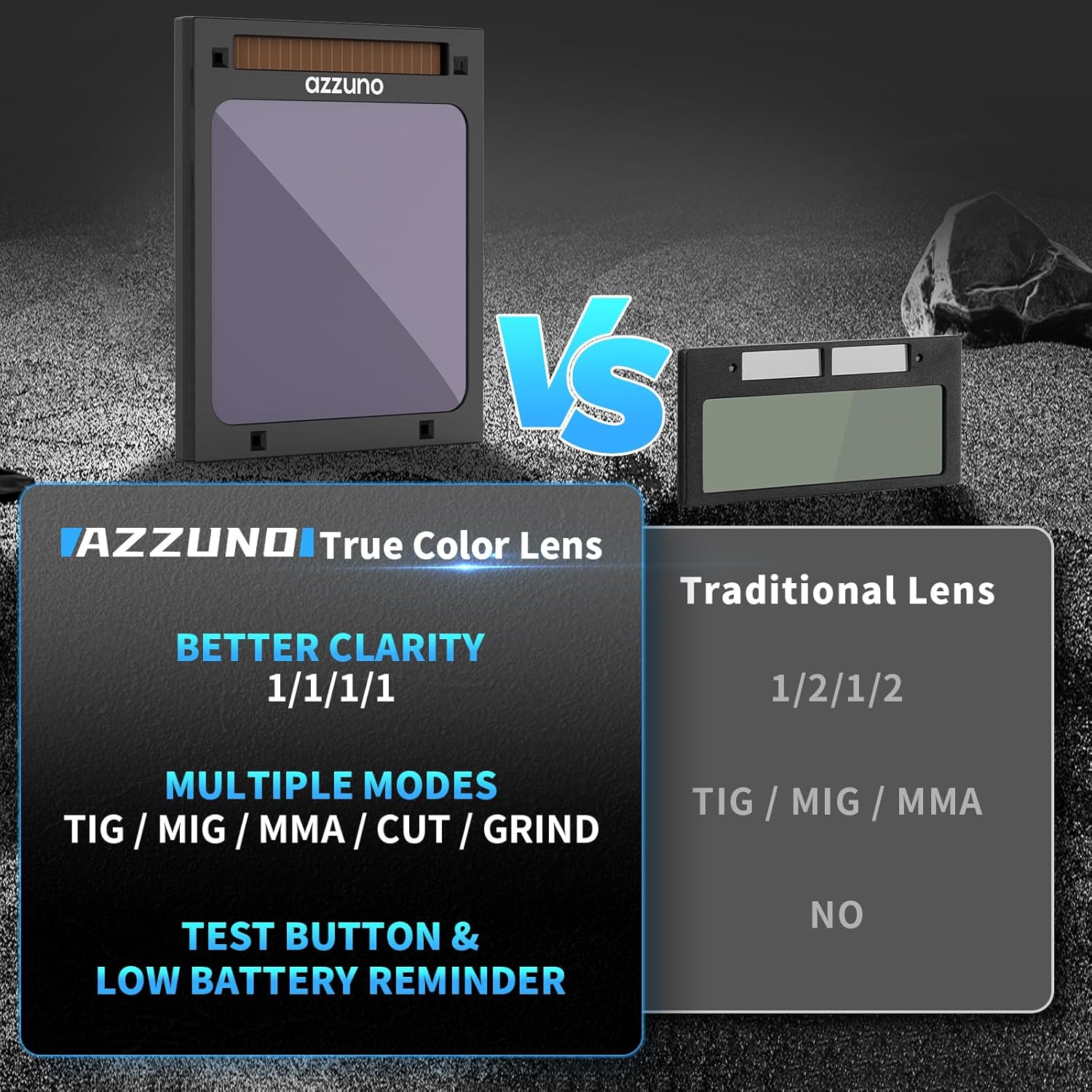 AZZUNO Welding Helmet Auto Darkening, True Color Large Viewing 3.94"×3.82", Solar Powered Welding Hood Mask with Wide Shade 4/5-9/9-13 for TIG/MIG/Stick Weld/Cut/Grind