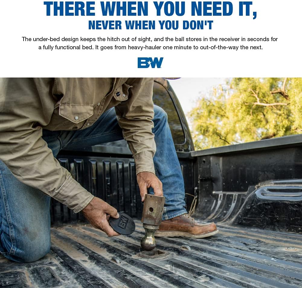 A hitch when you need it, a level bed when you don't. The Turnoverball Gooseneck Hitch bolts directly to the frame of your truck. The under-bed design keeps the hitch out of sight, and the ball stores in the receiver for a fully functional truck bed. The Turnoverball is made in America and backed with a limited lifetime warranty. The Turnoverball is the best-selling gooseneck hitch in America.