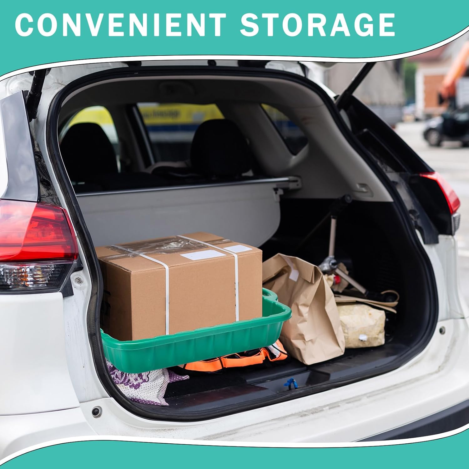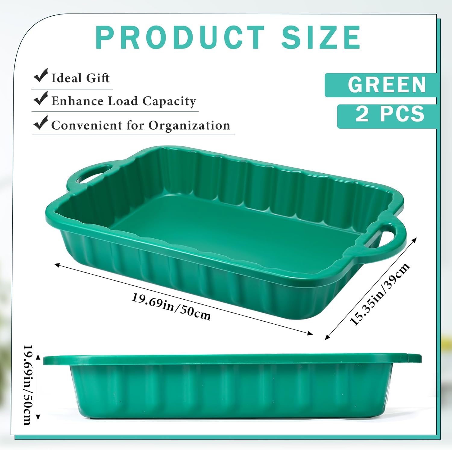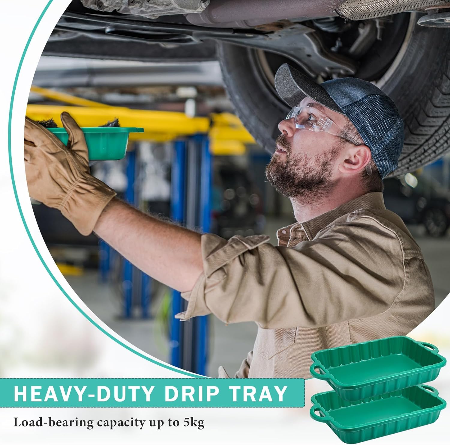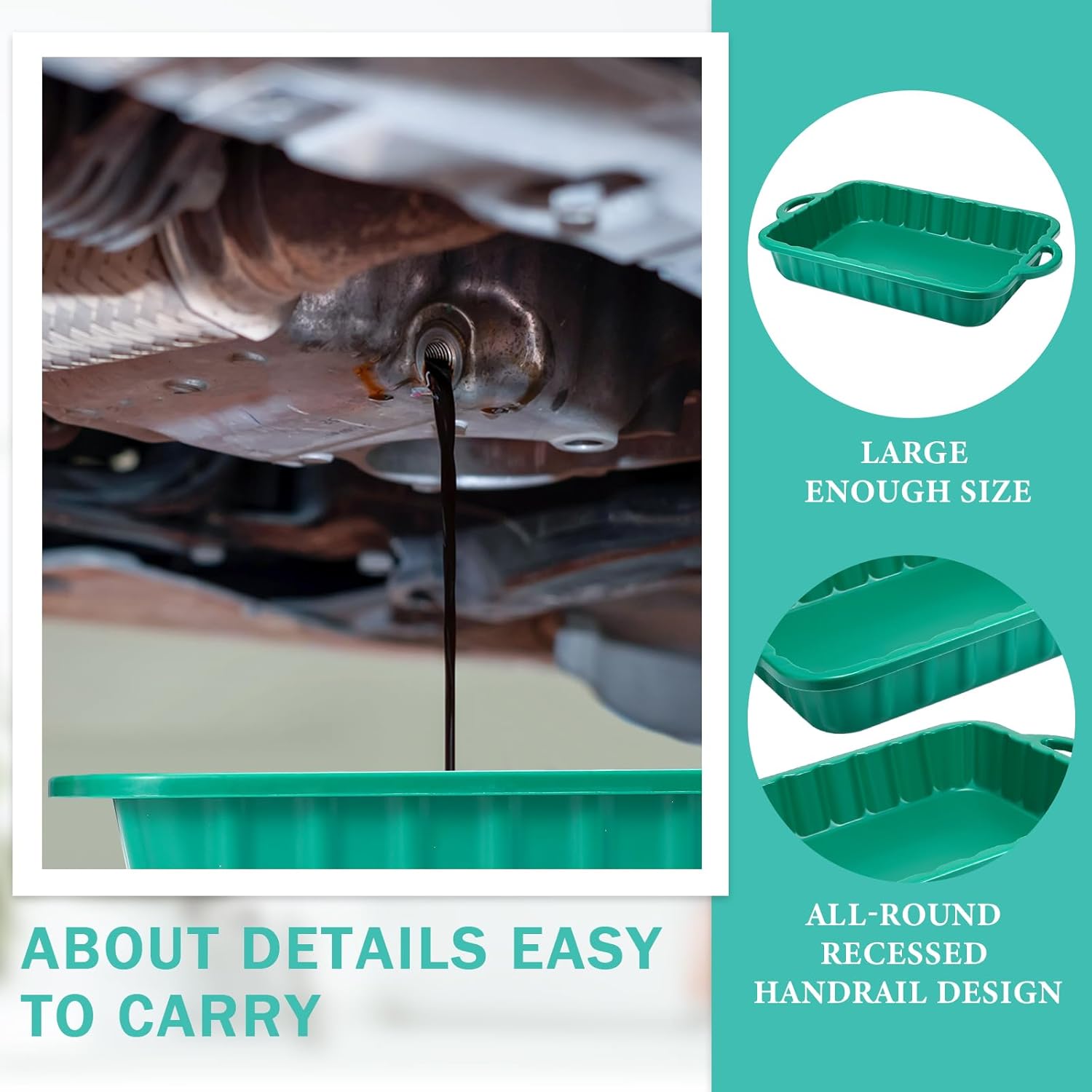 Baderke 2 Pcs 19.7 x 15.4 x 4 Inch Oil Drain Pans Green Oil Drip Tray Waste Oil Catcher 2 Gallon Square Oil Container Automotive Green Oil Storage Pan for Under Car to Keep Floor Clean