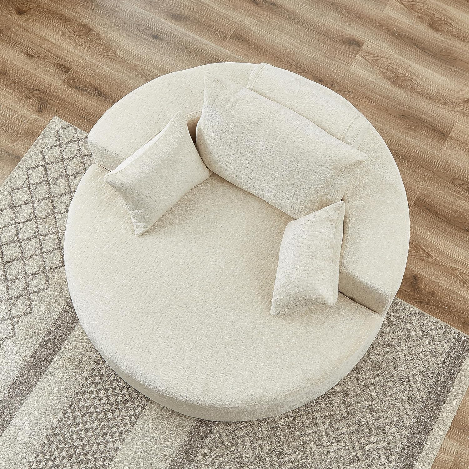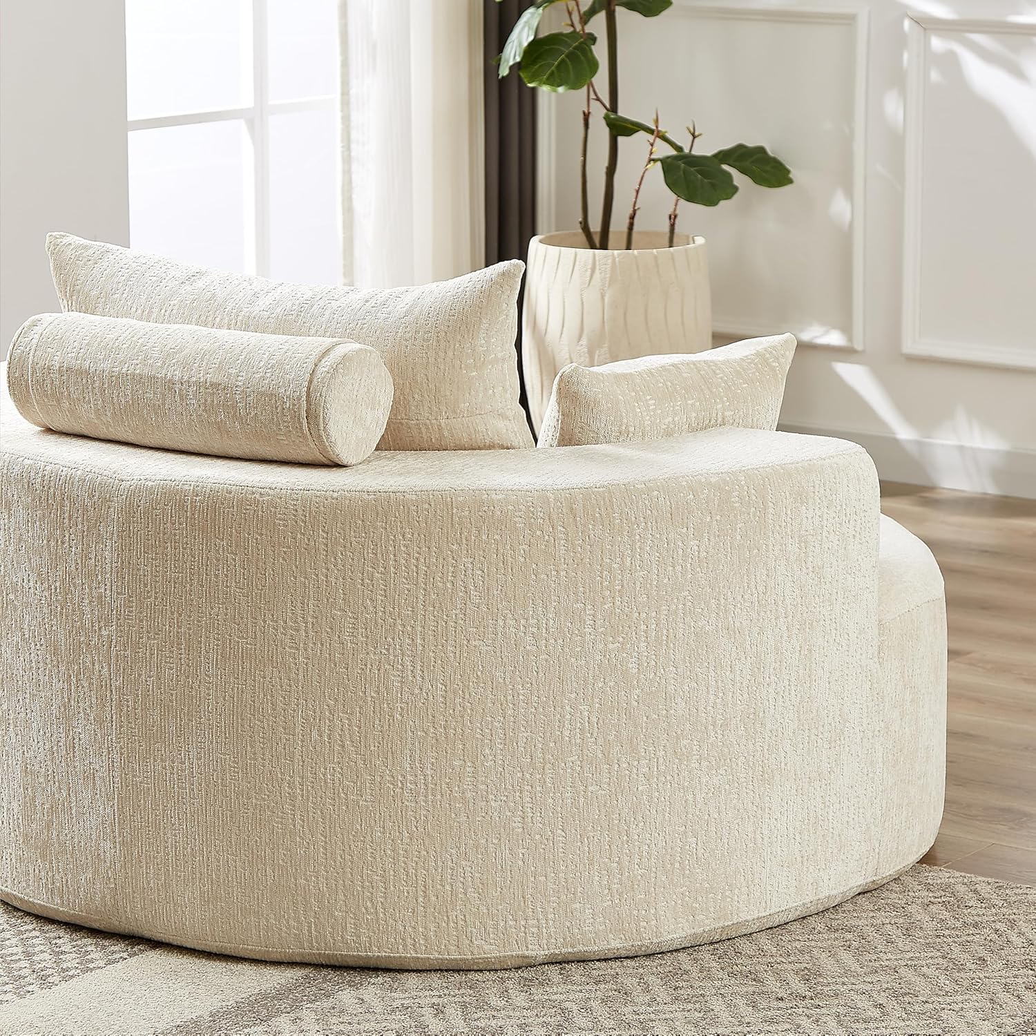 Ball & Cast 55" Oversized Accent Chair, Modern Chenille Single Sofa Sleeper with Wide Armrest and Pillows, Round Lounger Chair for Living Room, Bedroom,Projection Room,No Assembly Required,Beige
