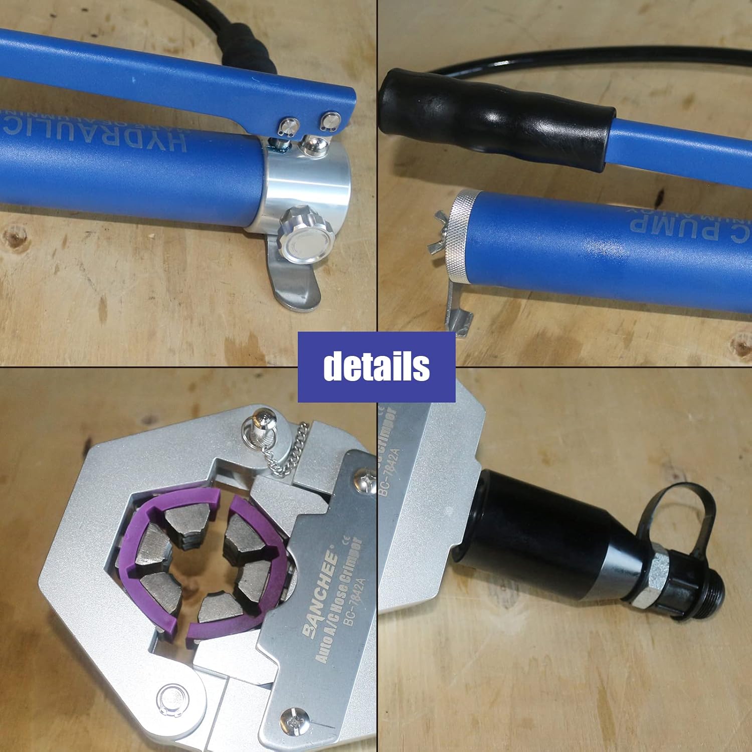 BANCHEE hydraulic hose crimping tool AC Crimping Tool for Barbed and Beaded Hose Fittings, Air Conditioning Repaire Ac Hose Crimper with 7 Die Set (BC-7842P)