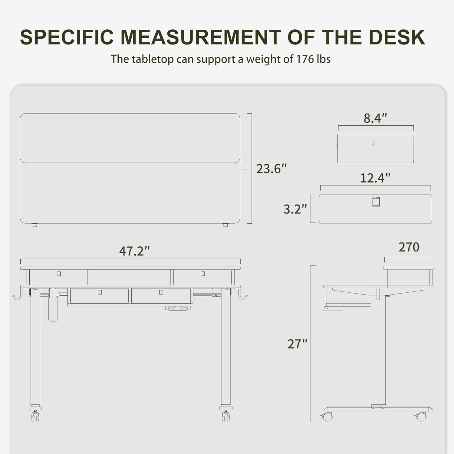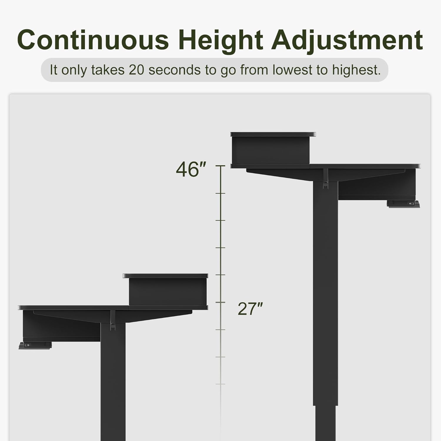 BANTI Height Adjustable Electric Standing Desk with 4 Drawers, 48 x 24 Inch Table with Storage Shelf, Sit Stand Desk, Black Top