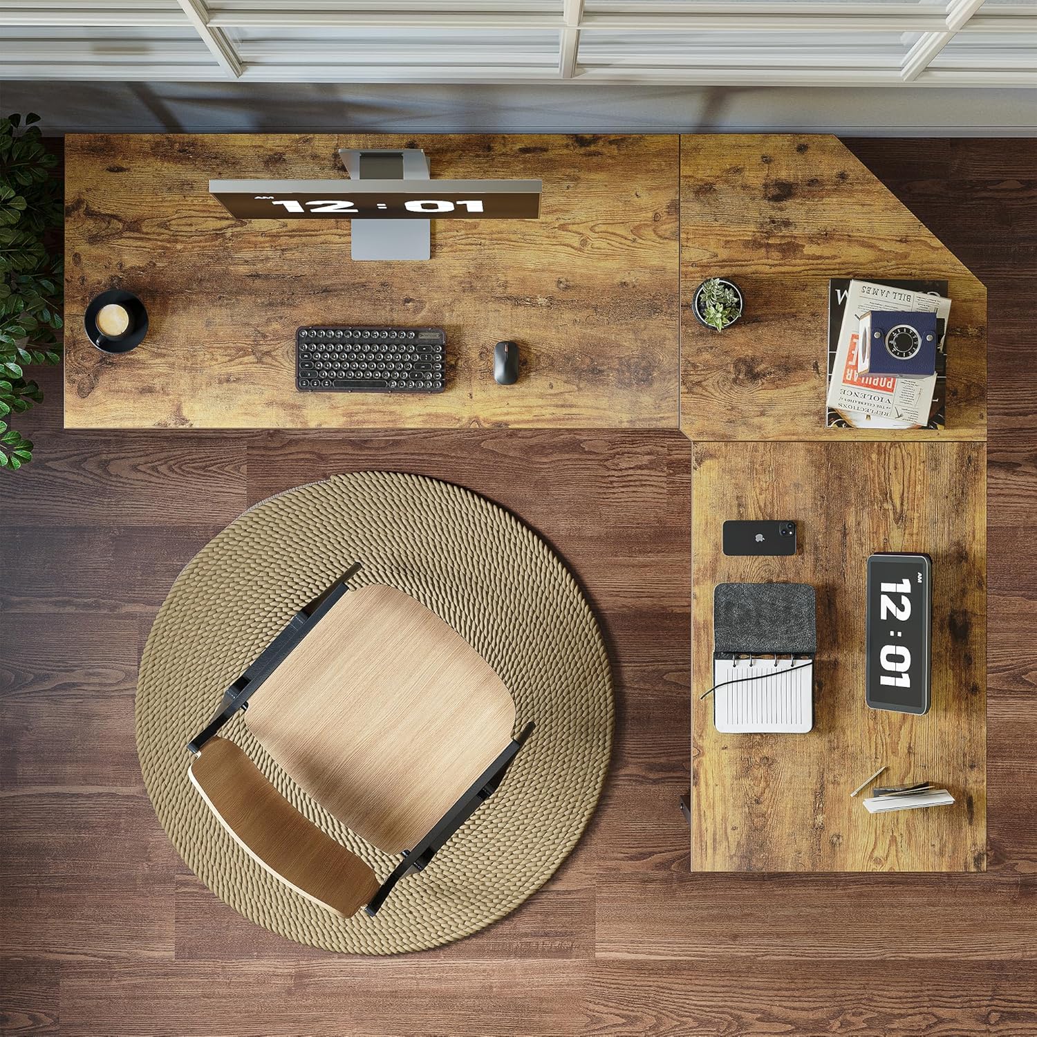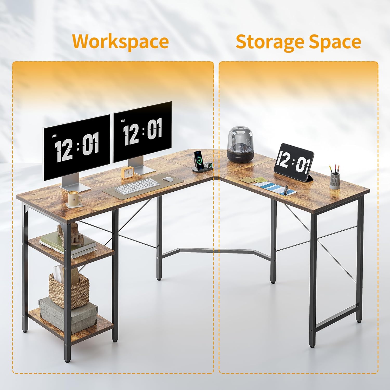 BANTI L Shaped Computer Desk, 59" Reversible Corner Desk with Storage Shelves, Home Office Desk for Writing Gaming Study, Rustic Brown