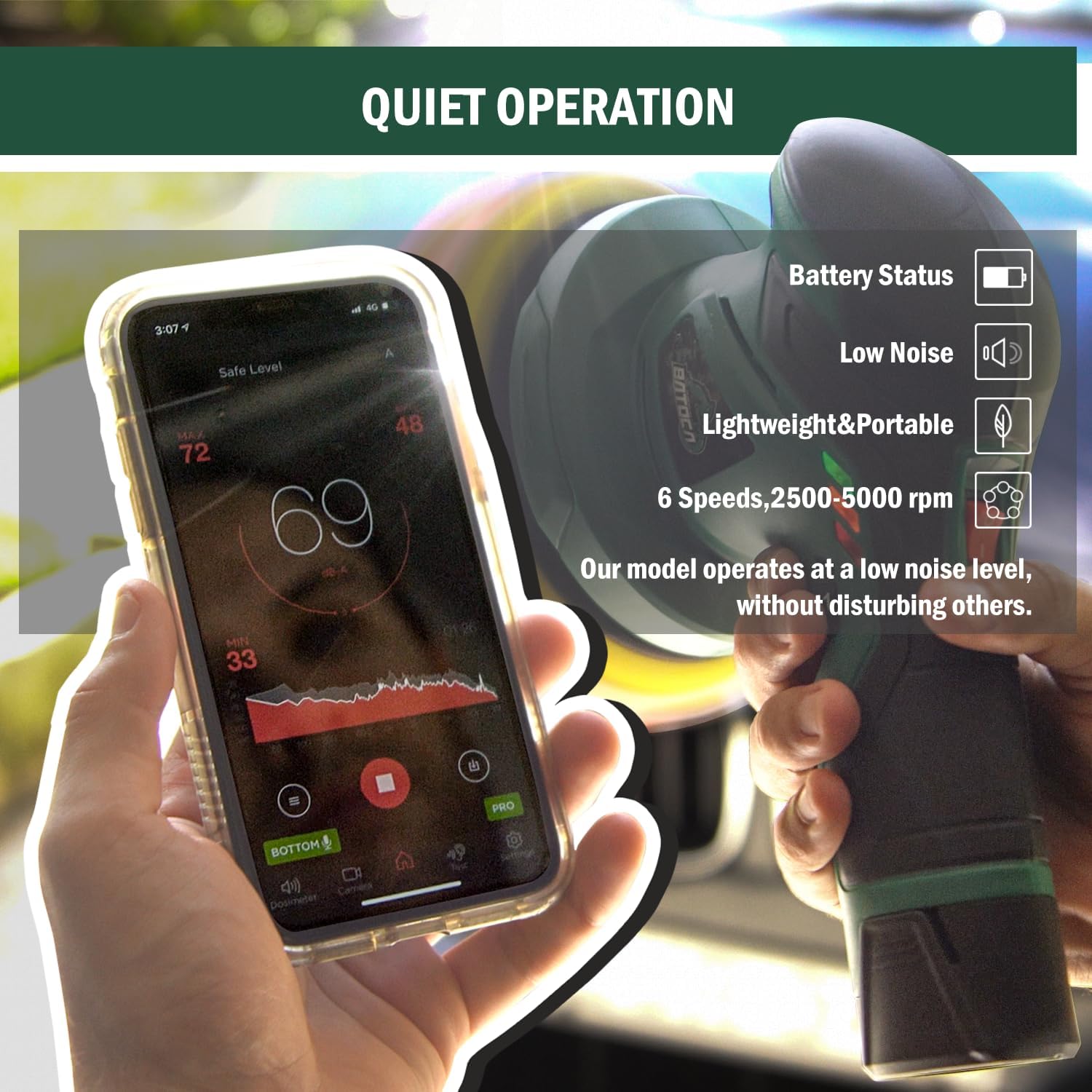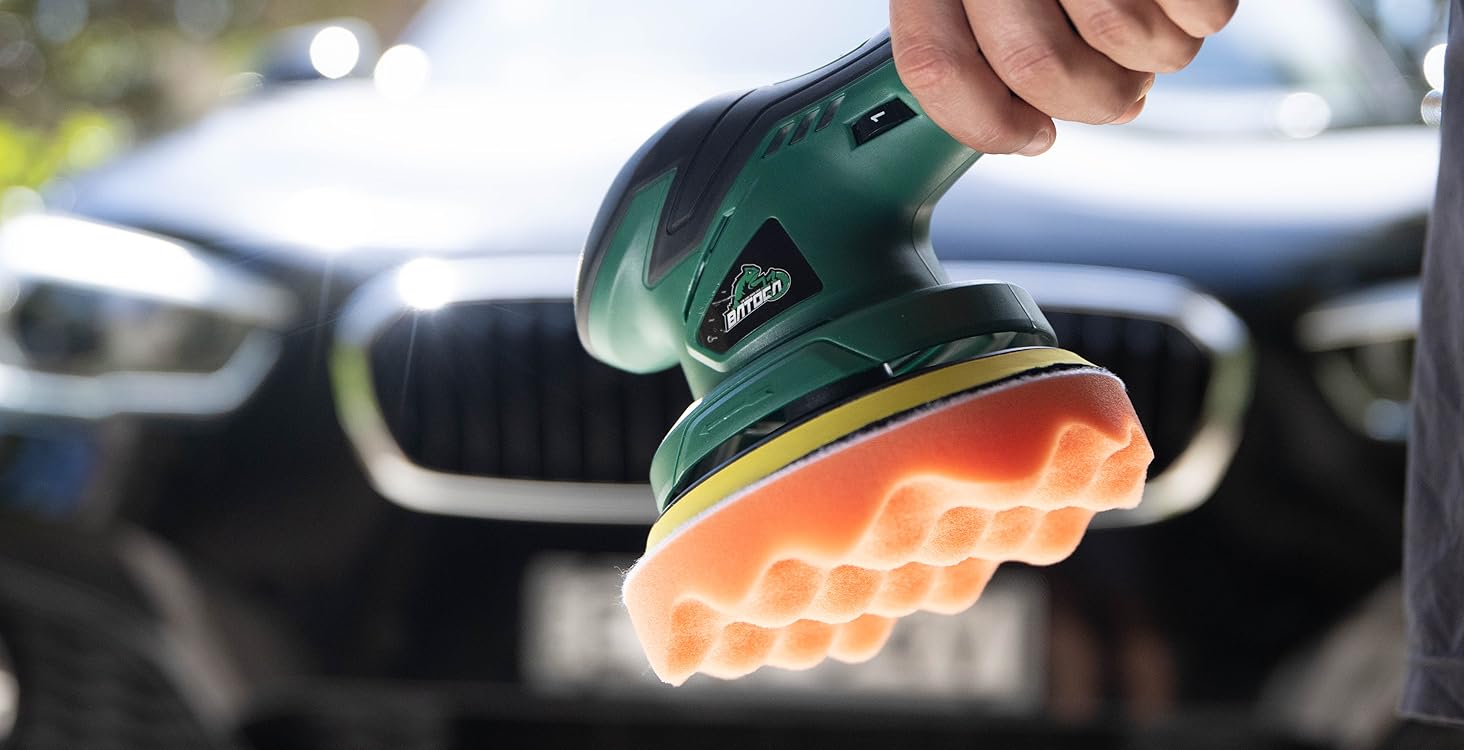 BATOCA - Cordless Car Buffer Polisher - 2pcs 2.0Ah 12V Lithium-ion Rechargeable Battery Powered Brushless Polisher with 6 Variable Speed, DA Orbital Buffer for Car Detailing, Polishing, Waxing