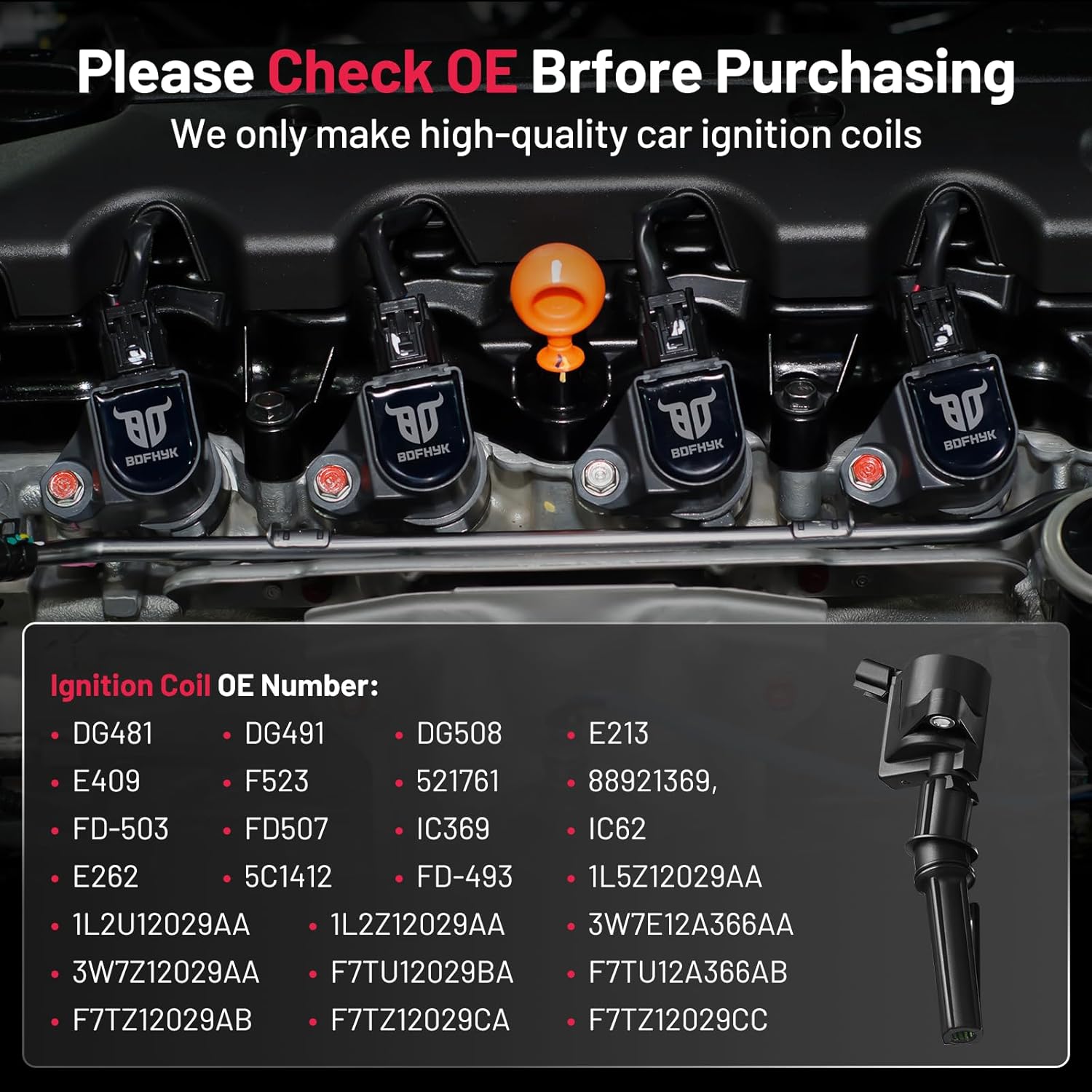 BDFHYK High Performance Ignition Coil DG508 Compatible with Ford F150 F250 1997-2010 Ford Explorer Crown Victoria 2003 2004 Ford Expedition Mustang Ford Coil Pack 5.4L Coil for DG481 DG491 Set of 8