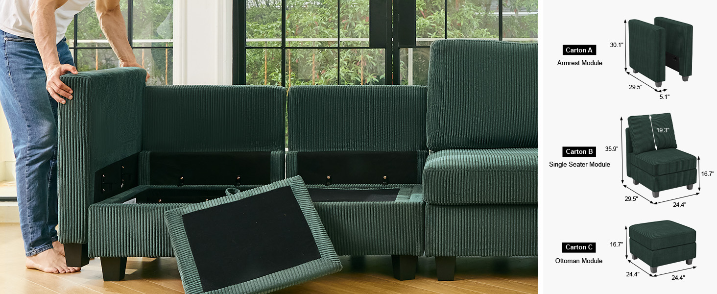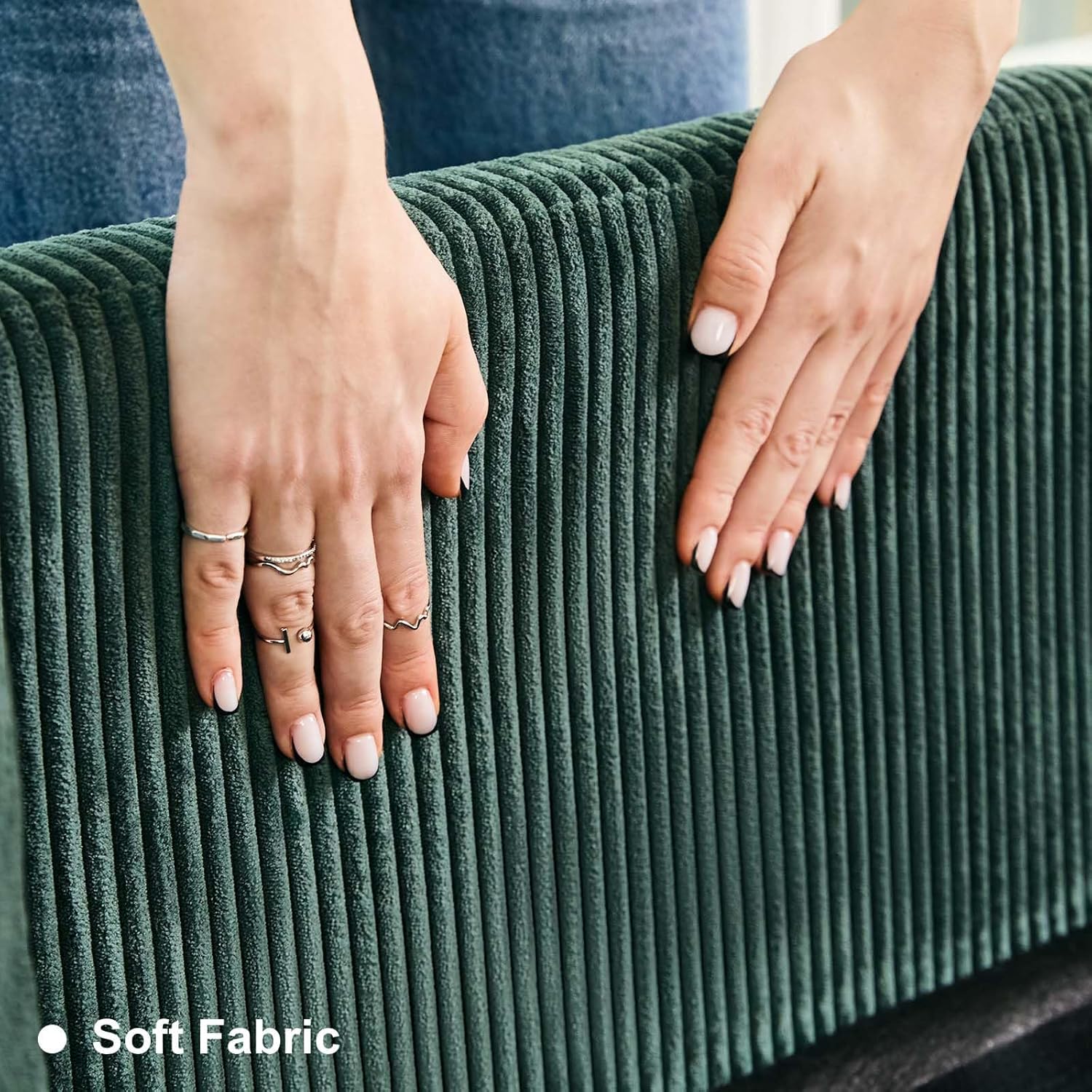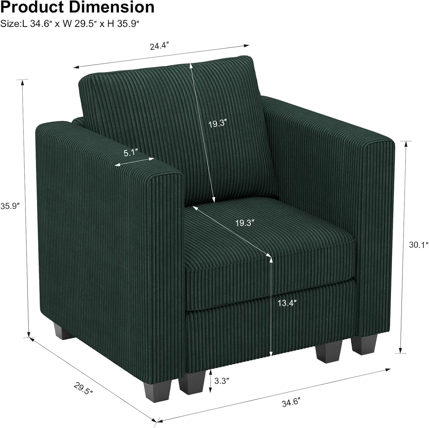 Belffin Corduroy Armchair Modular Arm Chair with Storage Modern Couch for Living Room Green