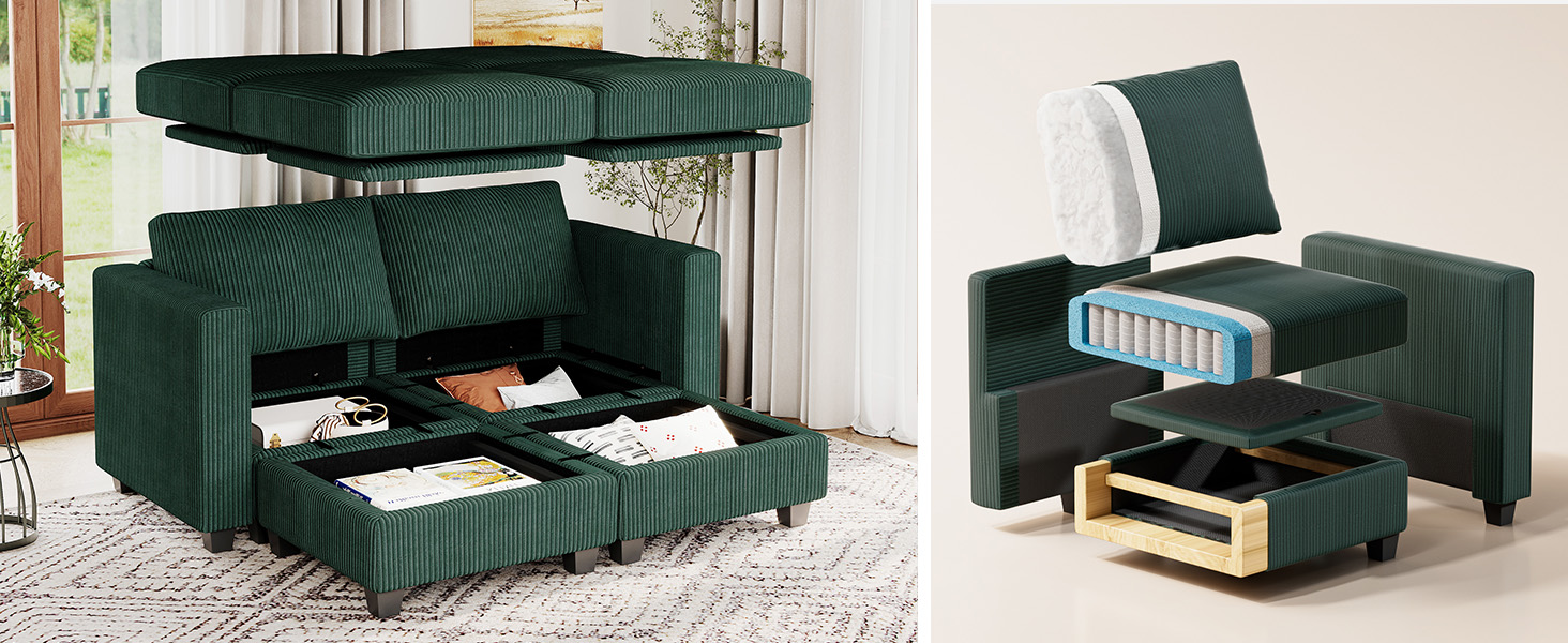 Modular sofa features allow to customize various configurations such as L or U shape couch. It is easy to change a normal sectional into a corner couch or sectional sleeper sofa in minutes. The more pieces you add, the greater opportunity that you get to bend and shape your life in your needs!