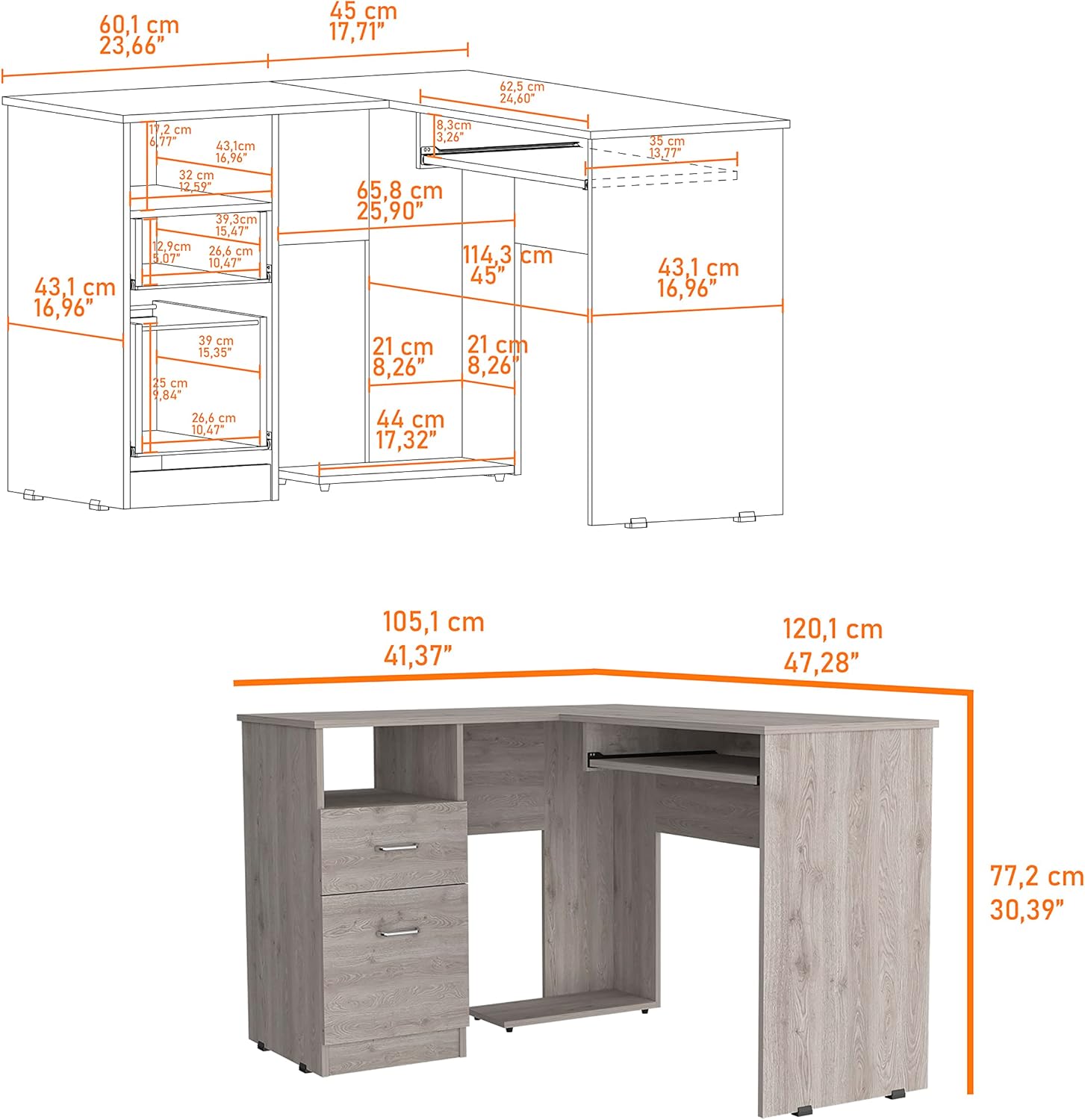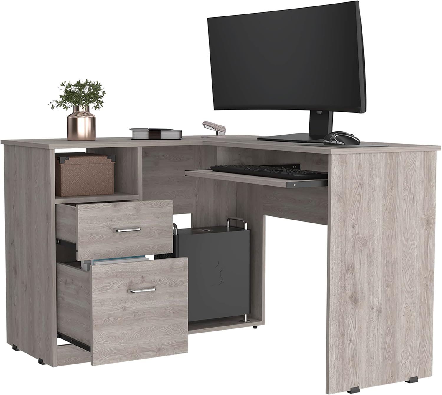 Bellemave L Shaped Desk, Computer Desk with Drawers, Keyboard Tray and Monitor Stand, Home Office Desks with Storage, Study Desk Writing Table, Corner Gaming Desk, Gray