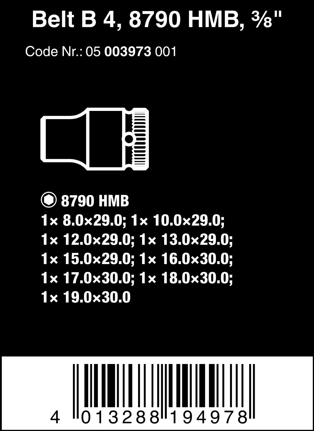 Wera Tools 05003973001 Belt B 4 bit sock with 3/8" drv holding function